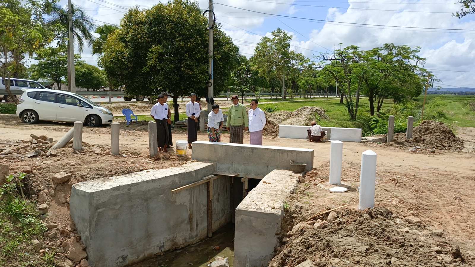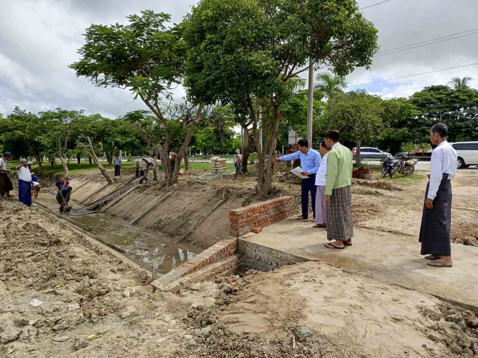 ရှေးဦးစွာ နေပြည်တော်ကောင်စီဝင်ဦးမြင့်စိုးသည် သဲကောကြီးကျေးရွာအနီးရှိ ကွင်းအမှတ် ၁၈၀၇၊ မဒန်းဆည်ရေသောက်စနစ်၊ လက်တံမြောင်းအမှတ်(၂)၊ အလျား၂၂ပေ၊အနံ ၄ပေ၊ အမြင့်၄ပေ Box Culvert တစ်စင်းတည်ဆောက်နေမှု၊ အလျား ၁၇၅ ပေ၊အကျယ်၅ပေရှိ ကွန်ကရစ်လိုင်နင် ဆောင်ရွက်နေမှုတို့အား ကြည့်ရှုစစ်ဆေးရာ တည်ဆောက်ရေး (၅) မှ ဦးစီးအရာရှိ ဦးဇော်မျိုးလတ်က လုပ်ငန်းဆောင်ရွက်ပြီးစီးမှုအား ရှင်းလင်းတင်ပြသည်။ အဆိုပါ Box Culvert တည်ဆောက်ပေး ခြင်းဖြင့် လယ်မြေဧက ၇၀ အားအကျိုးပြုနိုင်မည်ဖြစ်ပြီး ရေကြီးရေလျှံမှု ဖြစ်ပွားခြင်းများမှ ကာကွယ်၍ ရေစီးရေလာကောင်းမွန်မည်ဖြစ်ကြောင်း သိရသည်။