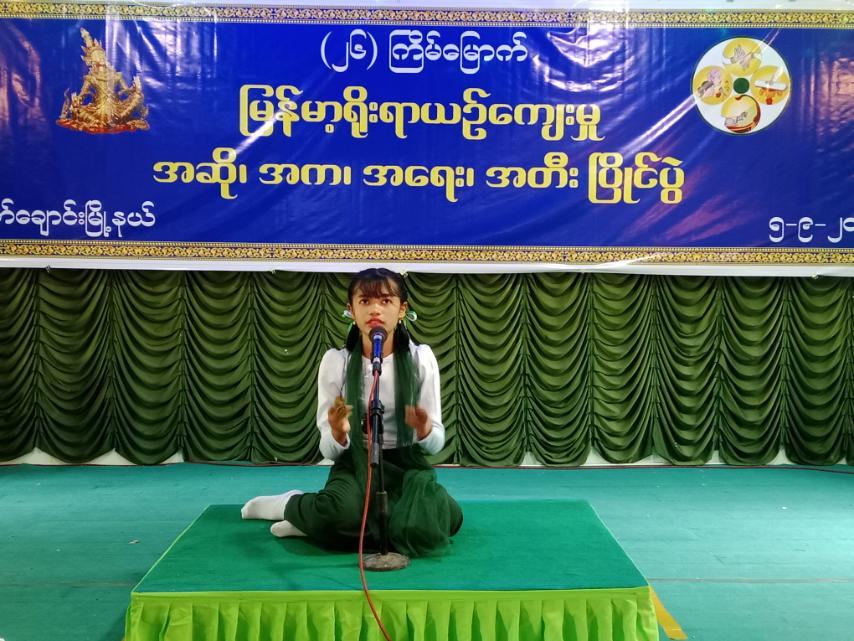 ရှေးဦးစွာ သရက်ချောင်းမြို့နယ်၊ စီမံခန့်ခွဲ‌ရေးနှင့်အုပ်ချုပ်‌ရေးကော်မတီဥက္ကဋ္ဌ ဦးအောင်မြင့်သိန်းက အဆိုပြိုင်ပွဲအား မြန်မာ့ရိုးရာယဉ်ကျေးမှုအမွေအနှစ်များ ပျောက်ကွယ်မသွားစေရေး ထိန်းသိမ်းစောင့်ရှောက်ခြင်းဖြင့် နိုင်ငံချစ်စိတ်၊ မျိုးချစ်စိတ်၊ အမျိုးဂုဏ်၊ ဇာတိဂုဏ်မြှင့်မားလာစေရန်ရည်ရွယ်၍ ကျင်းပရခြင်းဖြစ်ကြောင်း၊ မြန်မာ့ရိုးရာယဉ်ကျေးမှုအနုပညာရပ်များသည် နှစ်ပေါင်းထောင်ချီပြီး ရပ်တည်ရှင်သန်နေ‌သောကြောင့် တန်ဖိုးကြီးပြီး ဂုဏ်ယူဖွယ်ရာ ယဉ်ကျေးမှုအမွေအနှစ်များ ဖြစ်ပါ‌ကြောင်း စသည်ဖြင့် အဖွင့်အမှာစကား ပြောကြားခဲ့သည်။