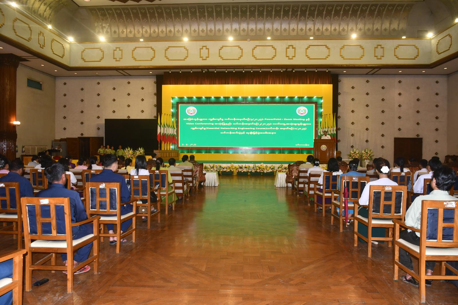 အခြေခံကွန်ပျူတာကျွမ်းကျင်မှုသင်တန်းအမှတ်စဉ် (၃/၂၀၂၅)၊ PowerPoint ၊ Zoom Meeting နှင့် Video Conferencing အသုံးပြုနည်း သင်တန်းအမှတ်စဉ် (၂/၂၀၂၅)၊ လက်တွေ့အသုံးချ ကွန်ပျူတာကျွမ်းကျင်မှု (Essential Networking Engineering Course) သင်တန်းအမှတ်စဉ် (၁/၂၀၂၅) သင်တန်းဆင်းပွဲနှင့် ဆုချီးမြှင့်ခြင်းအခမ်းအနားကို ယနေ့နေ့လယ်ပိုင်းက ရန်ကုန်တိုင်းဒေသကြီးအစိုးရအဖွဲ့ရုံး၊ မင်္ဂလာခန်းမတွင်ကျင်းပရာ ရန်ကုန်တိုင်းဒေသကြီးဝန်ကြီးချုပ် ဦးစိုးသိန်း၊ တိုင်းဒေသကြီးဝန်ကြီးများ၊ သင်တန်းကြီးကြပ်များ၊ သင်တန်းနည်းပြဆရာ၊ ဆရာမများ၊ ဌာနဆိုင်ရာအသီးသီးမှ သင်တန်းသား၊ သင်တန်းသူများနှင့် တာဝန်ရှိသူများ တက်ရောက်ခဲ့ကြသည်။