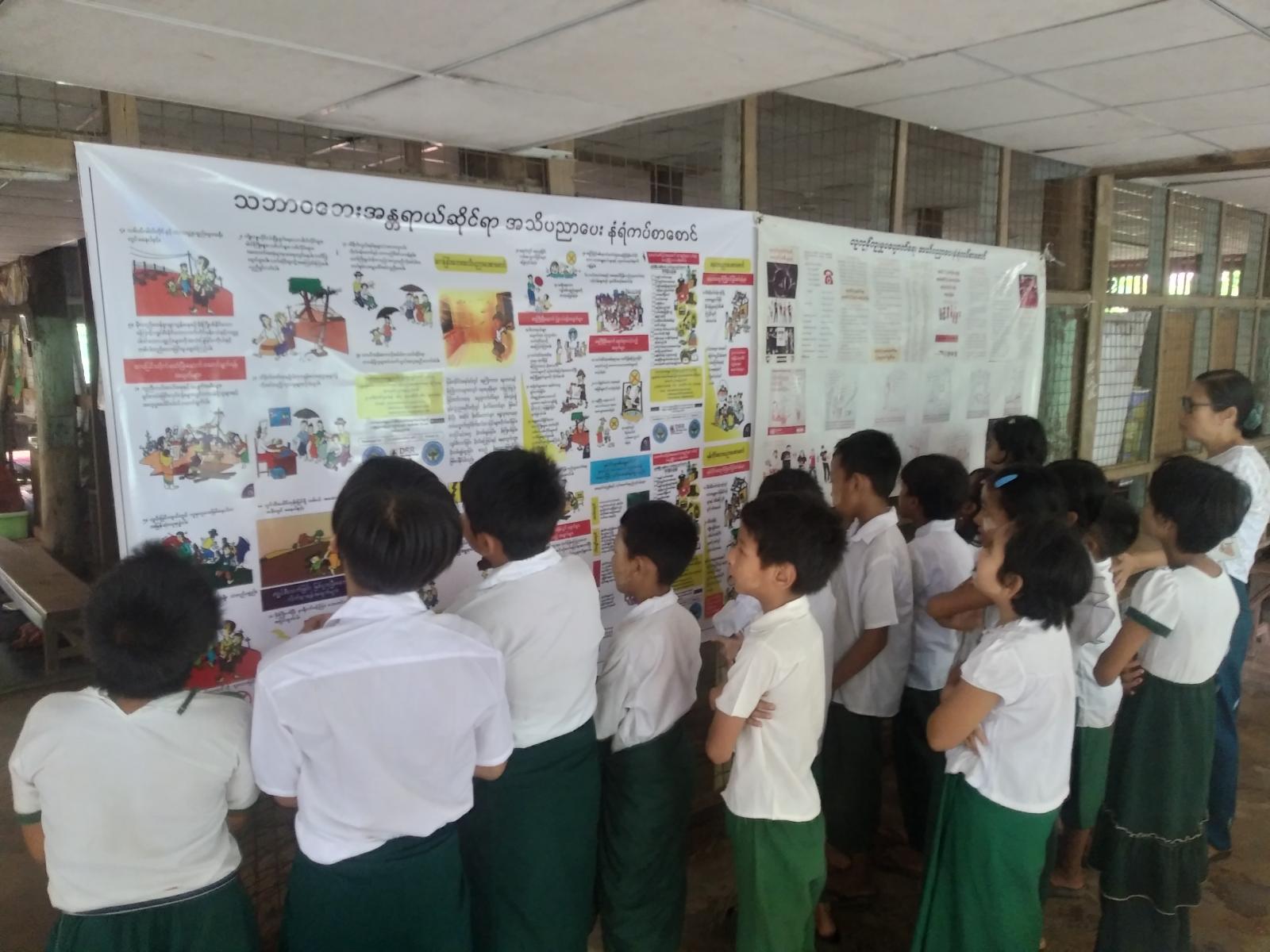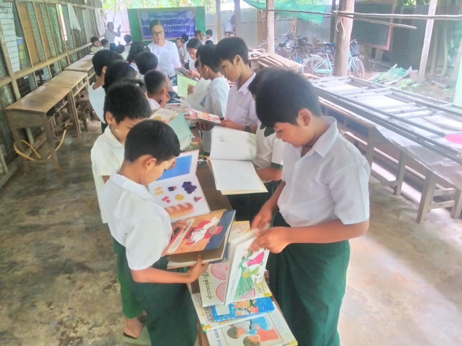 ထို့နောက် ကျောင်းသား၊ ကျောင်းသူများအား ပြန်ကြားရေးနှင့်ပြည်သူ့ဆက်ဆံရေးဦးစီးဌာန ဝန်ထမ်းများမှ ရုပ်ပုံပါစာအုပ်ဖြင့်ပုံပြင်ပြောခြင်း၊ အသိပညာဗဟုသုတရရှိစေမည့် စာအုပ်စာစောင်များ ပြသခြင်း၊ ဖတ်ရှုစေခြင်းများ ဆောင်ရွက်ခဲ့ပြီး လူကုန်ကူးမှုတားဆီးကာကွယ်ရေး အသိပညာပေးနံရံကပ်စာစောင်၊ သဘာဝဘေးအန္တရာယ်ဆိုင်ရာ အသိပညာပေးနံရံကပ်စာစောင်များ ပြသခြင်းတို့ ဆောင်ရွက်ခဲ့ရာ ကျောင်းသား၊ ကျောင်းသူများမှ စိတ်ပါဝင်စားစွာ လေ့လာကြည့်ရှုမှတ်သားခဲ့ကြောင်း သိရသည်။