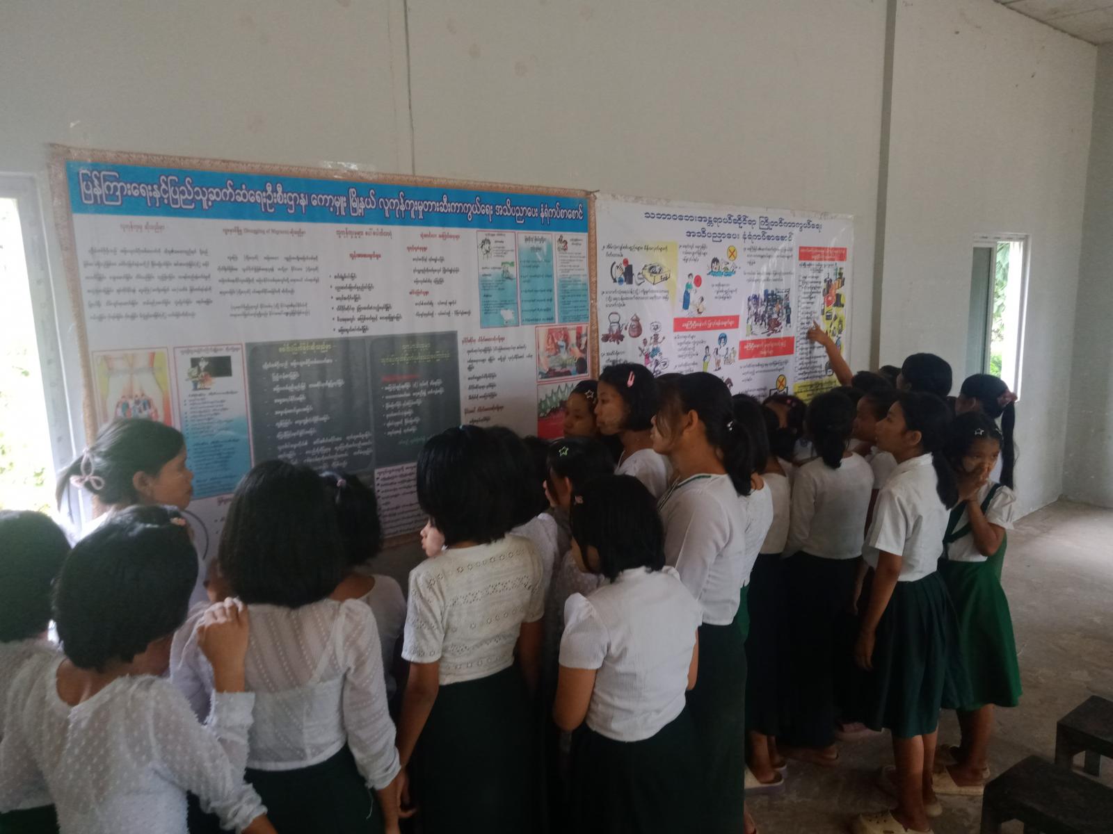 ဆက်လက်၍ ပြန်ကြားရေးနှင့်ပြည်သူ့ဆက်ဆံရေးဦးစီးဌာနမှ ပြသထားသော သုတ/ရသစာအုပ်၊ စာစောင်များနှင့် အသိပညာပေးနံရံကပ်စာစောင်များ ပြသထားရာ ဆရာ/ ဆရာမများ၊ ကျောင်းသား/ ကျောင်းသူများ စိတ်ပါဝင်စားစွာ လေ့လာနေကြကြောင်း သိရသည်။