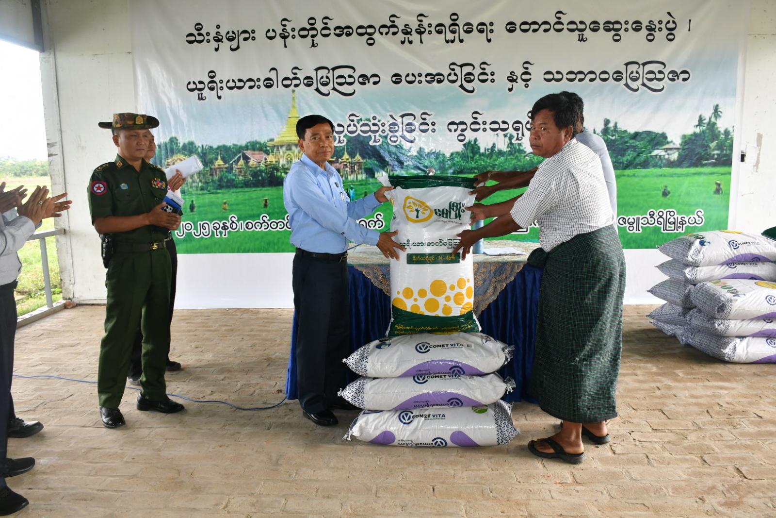 ဦးစွာ နေပြည်တော်ကောင်စီဥက္ကဋ္ဌ ဦးသန်းထွန်းဦးက မျိုး၊ မြေ၊ ရေ၊ နည်း နည်းလမ်းများနှင့်အညီ စနစ်တကျစိုက်ပျိုးရေး၊ သဘာဝမြေဩဇာကို တောင်သူများကိုယ်တိုင် ပြုလုပ်သုံးစွဲရေး၊ နိုင်ငံတော်မှ သက်သာသော ဈေးနှုန်းဖြင့် ဖြန့်ဖြူးပေးသည့် ဓာတ်မြေဩဇာများအား အမှန်တကယ်လိုအပ်သော တောင်သူများလက်ဝယ်သို့ ရောက်ရှိရေး၊ သီးနှံများ ပန်းတိုင်အထွက်နှုန်းရရှိရေးနှင့် တစ်နှစ်သုံးသီး ရာသီပြည့် စိုက်ပျိုးနိုင်ရေး၊ စိုက်ပျိုးရေရရှိရေးအတွက် နည်းလမ်းမျိုးစုံ အသုံးပြု ဆောင်ရွက်ရေး၊ လယ်ယာမြေများတွင် ပလပ်မြေမရှိအောင် ကွက်ပြည့်စိုက်ပျိုးနိုင်ရေး တို့ကိုမှာကြားသည်။ ထို့နောက် နေပြည်တော်ကောင်စီဥက္ကဋ္ဌ ဦးသန်းထွန်းဦးကဓာတ်မြေဩဇာသွင်းအားစုများအား တောင်သူများထံ ပေးအပ်ကြပြီး တောင်သူများ၏ တင်ပြချက်များအပေါ် သက်ဆိုင်ရာဌာနများနှင့် ပေါင်းစပ်ညှိနှိုင်း ဆောင်ရွက်ပေးသည်။ ဆက်လက်၍ နေပြည်တော်ကောင်စီဥက္ကဋ္ဌ ဦးသန်းထွန်းဦးသည် တောင်သူများနှင့်အတူ မြေပဲရိုးဖြင့် သဘာဝမြေဩဇာ ပြုလုပ်နည်းသရုပ်ပြသဆောင်ရွက်နေမှုနှင့် သဘာဝဓာတ်မြေဩဇာနှင့် ပုလဲဓာတ်မြေဩဇာရောနှောကြဲပက်ခြင်းအား ကြည့်ရှုအားပေးခဲ့သည်။