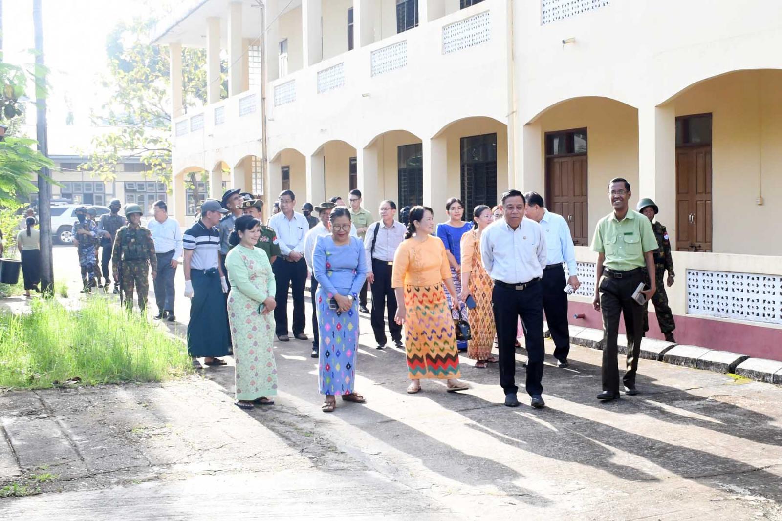 တနင်္သာရီတိုင်းဒေသကြီးဝန်ကြီး ချုပ်ဦးမြတ်ကိုသည် တိုင်းဒေသကြီးဝန်ကြီးများနှင့်အတူ တာဝန်ရှိသူများလိုက်ပါလျက် စက်တင်ဘာ ၆ ရက် နံနက်ပိုင်းတွင် ထားဝယ်သူနာပြု သင်တန်းကျောင်းဝင်းအတွင်း စုပေါင်းသန့်ရှင်းရေးလုပ်ငန်းများဆောင်ရွက်နေမှုနှင့် တည်ဆောက်ရေးလုပ်ငန်းများအား ကြည့်ရှုစစ်ဆေးသည်။