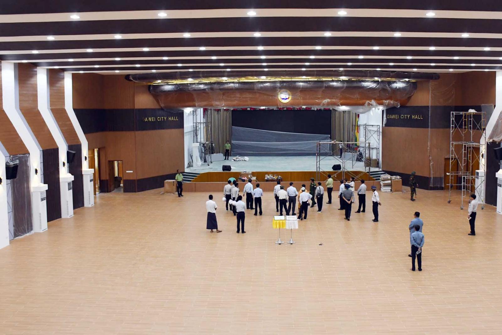 ထို့နောက် တိုင်းဒေသကြီးဝန်ကြီးချုပ်က ထားဝယ်မြို့တော်ခန်းမ အဆောက်အဦတည်ဆောက်ပြီးစီးမှု အခြေအနေများအား ကြည့်ရှုစစ်ဆေးပြီး ဆောက်လုပ်ရေးဦးစီးဌာန၊ညွှန်ကြားရေးမှူးက အဆောက်အဦ အတွင်း တည်ဆောက်ပြီးစီးနေပြီဖြစ်သော အချောသပ်လုပ်ငန်းများ၊ အဆောက်အဦပြင်ပ ဆက်စပ်လုပ်ငန်းများအား ရှင်းလင်းတင်ပြရာ တိုင်းဒေသကြီး ဝန်ကြီးချုပ်က LED Video wall ၊ အသံစနစ်များ၊ လိုက်ကာများ တပ်ဆင်နေမှုများနှင့် မြို့တော်ခန်းမရှေ့ မြေယာရှုခင်းလုပ်ငန်းများကို အချိန်မီပြီးစီးအောင် ဆောင်ရွက်ပေးရန်၊ သတ်မှတ်အရည်အသွေး စံချိန်စံညွှန်းနှင့် အညီဆောင်ရွက်ပေး ရန် လိုအပ်ကြောင်း မှာကြားသည်။
