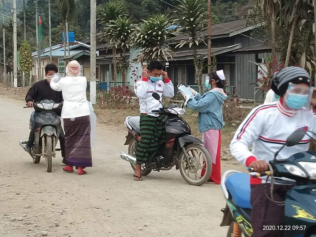 အဆိုပါ Mask Campaign ပြုလုပ်ရာတွင် မြို့နယ်ဆရာဝန်ကြီးဒေါက်တာမျိုးသန့် ဦးဆောင် ၍ ကျန်းမာရေးဝန်ထမ်းများ၊ မြို့နယ်နာဂရိုးရာစာပေနှင့်ယဉ်ကျေးမှုကော်မတီ ဒုတိယဥက္ကဌ ဦးရွှင်လန်းနှင့်အဖွဲ့ဝင်များ၊ မြို့နယ်ပြန်/ဆက်ဝန်ထမ်းများပူးပေါင်း၍ ဈေးရောင်း၊ ဈေးဝယ် ပြည်သူ များအား ကိုဗစ်-၁၉ရောဂါကာကွယ်ရေးအတွက် နှာခေါင်းစည်း Mask(၁၂၀၀)ခုအား အခမဲ့ ဖြန့်ဝေ ပေးပြီး စနစ်တကျတပ်ဆင်စေ၍ မလိုအပ်ဘဲ နေအိမ်အပြင်သို့ ထွက်ခွာ ခြင်းမပြုလုပ်ကြရန်နှင့် ကျန်းမာရေးနှင့်အားကစားဝန်ကြီးဌာနမှ ထုတ်ပြန်ထားသည့် အမိန့် နှင့်ညွှန်ကြား ချက်များ ကိုလိုက်နာကြရန် အသိပညာပေးနှိုးဆော် ခဲ့ကြောင်းသိရသည်။