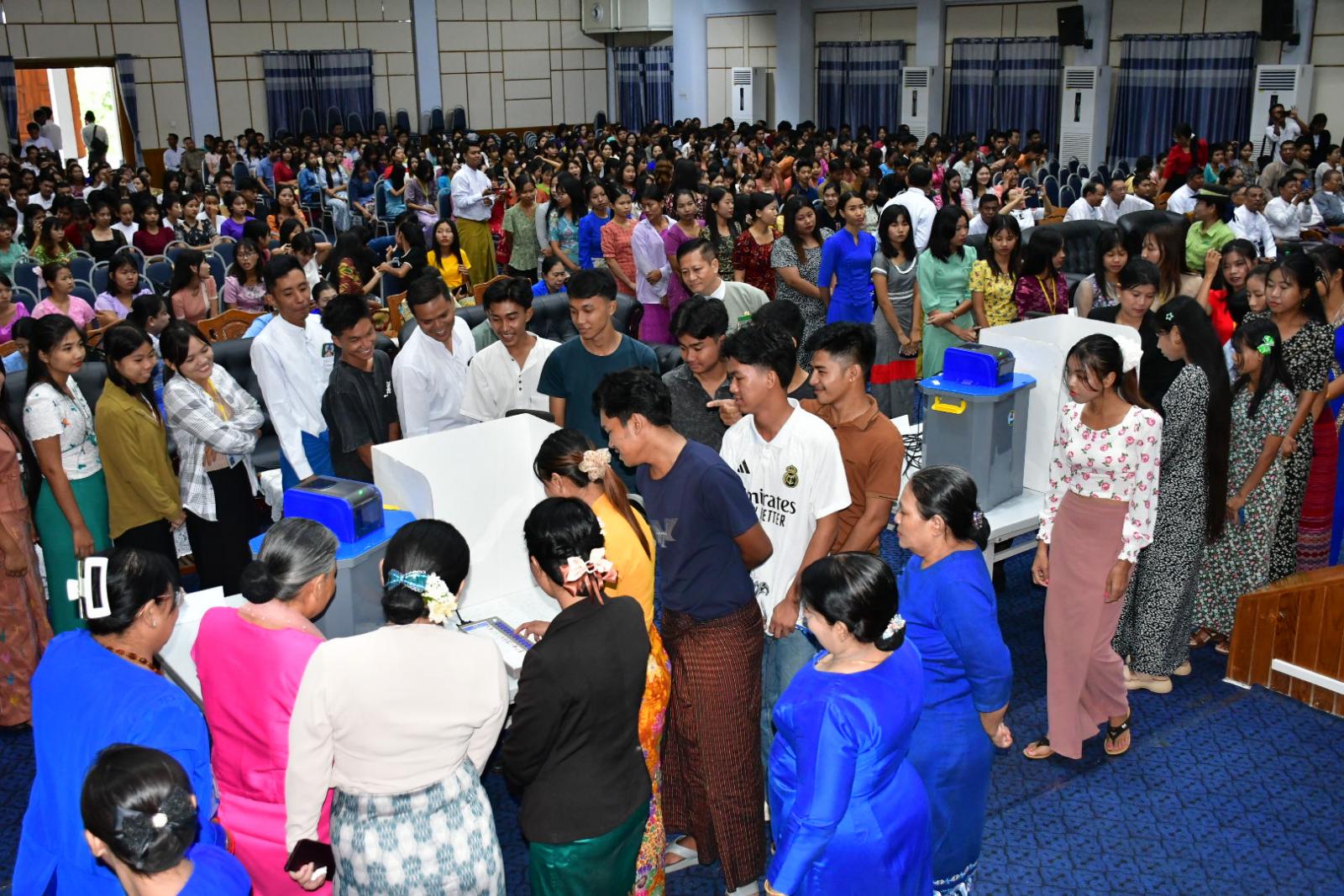ထို့နောက် ဆရာ၊ ဆရာမများနှင့် ကျောင်းသား၊ ကျောင်းသူများ၏ မြန်မာအီလက်ထရောနစ် မဲပေးစက်ဖြင့် တစ်ဦးချင်း လက်တွေ့စမ်းသပ်မဲပေးခြင်းကို တာဝန်ရှိသူများကကြည့်ရှုအားပေးခဲ့ကြပြီး ခရိုင်နှင့်မြို့နယ်ရွေးကောက်ပွဲ ကော်မရှင်ဝန်ထမ်းများနှင့် အထွေထွေအုပ်ချုပ်ရေးဦးစီးဌာန ဝန်ထမ်းများက လိုအပ်သည်များကူညီဆောင်ရွက်ပေးခဲ့ကြောင်းသိရသည်။
