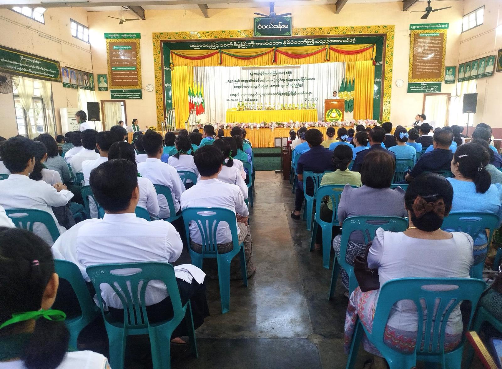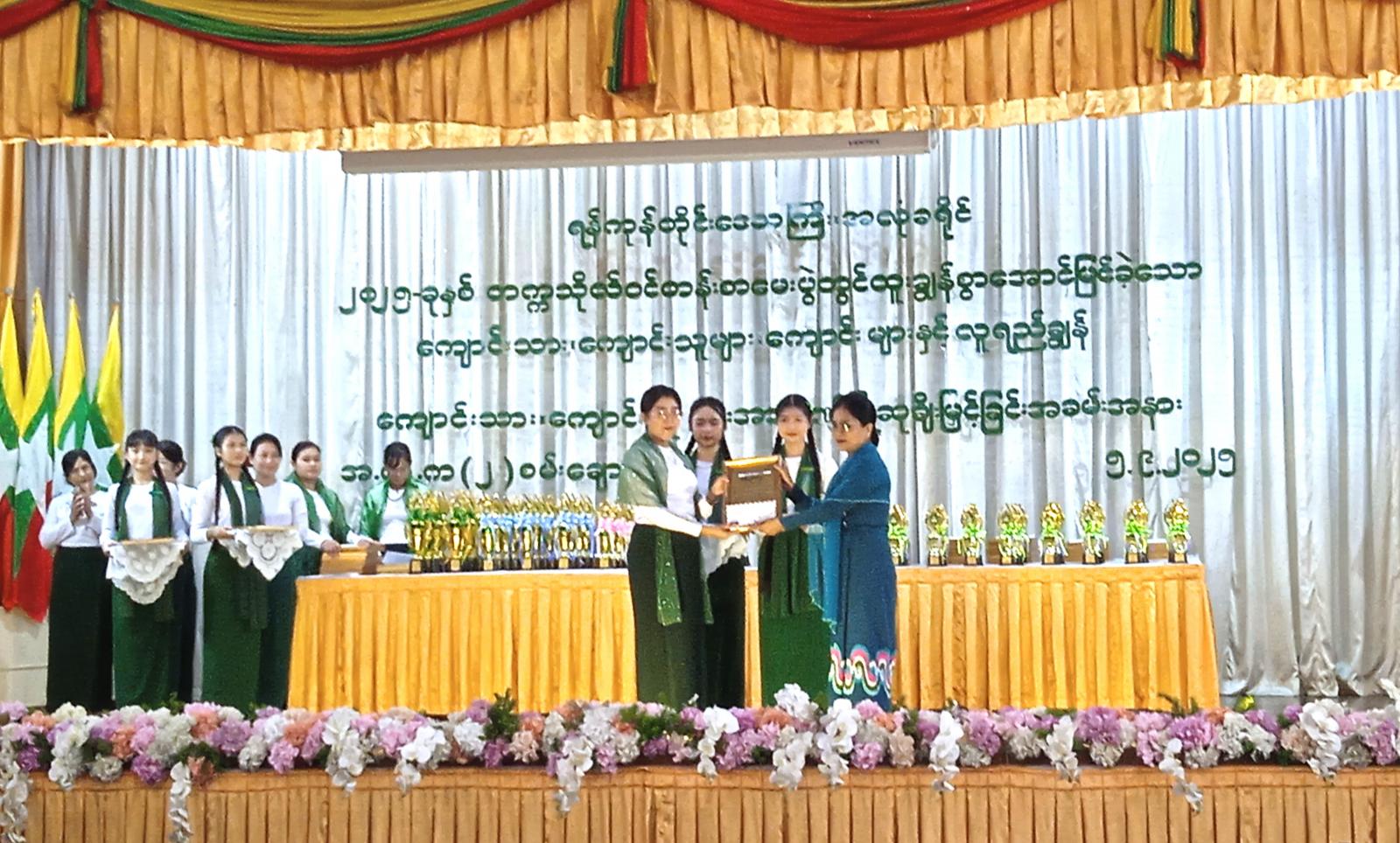 အခမ်းအနားတွင် ခရိုင်စီမံခန့်ခွဲရေးနှင့် အုပ်ချုပ်ရေးကော်မတီဥက္ကဋ္ဌ ဦးထွန်းသိန်းက ဂုဏ်ပြုအမှာ စကားပြောကြားခဲ့ပြီး၊ ခရိုင်ပညာရေးမှူး ဆရာမကြီးမှ ဆုချီမြှင့်ခြင်းနှင့်ပတ်သတ်၍ ရှင်းလင်းပြောကြားခဲ့သည်။