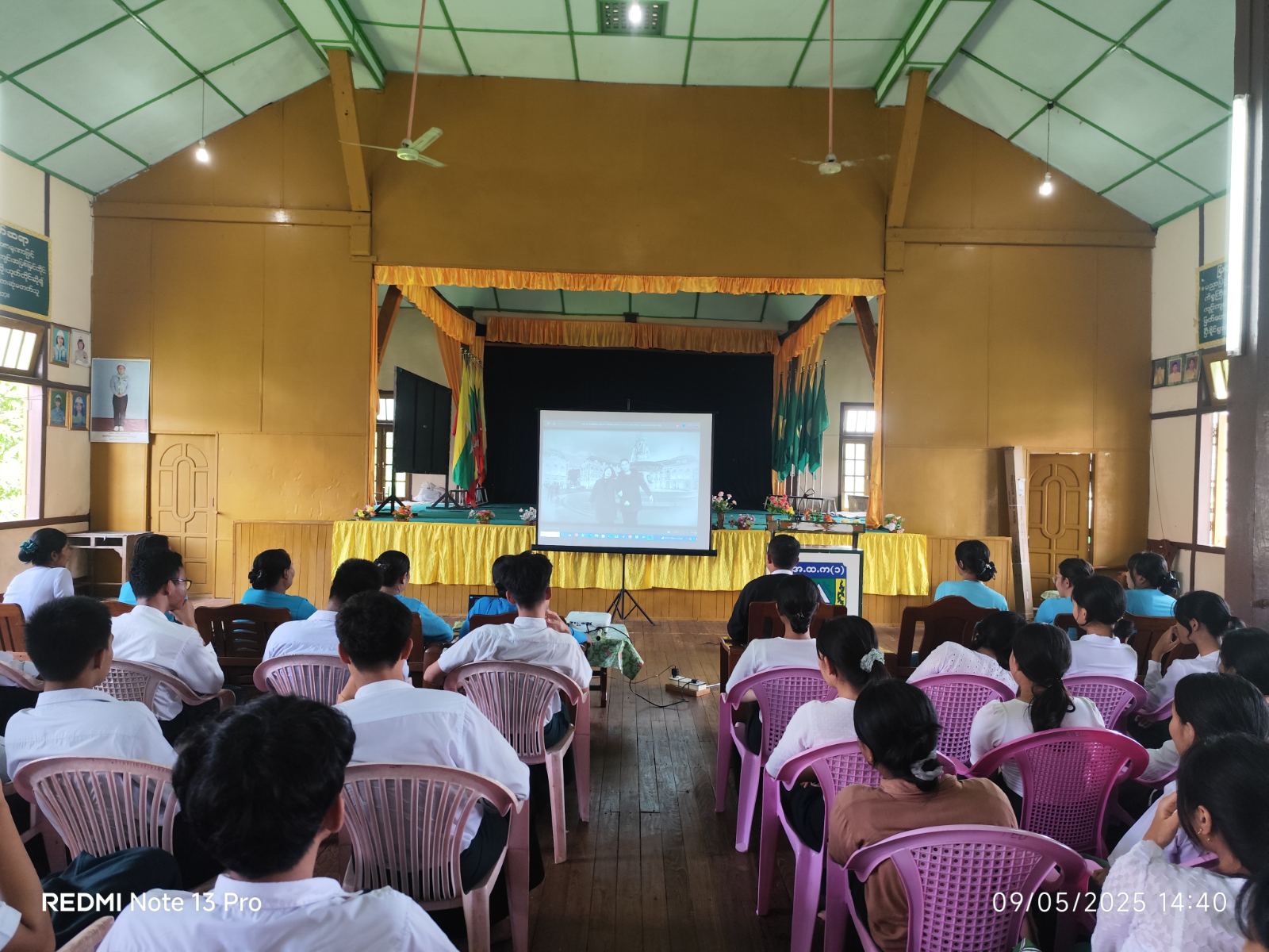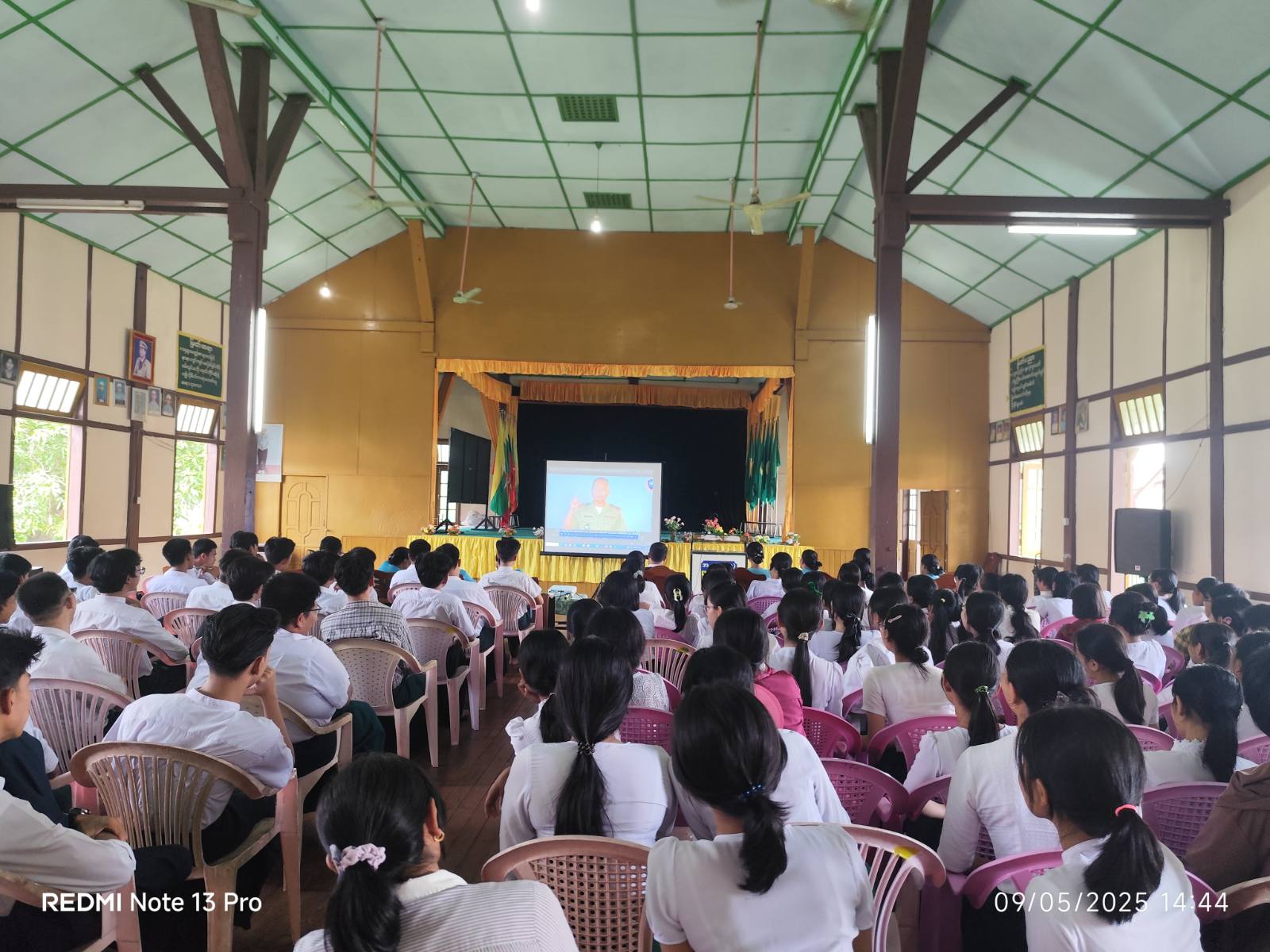 ဦးစွာ ဒုတိယမြို့နယ် ဥပဒေအရာရှိ ဦးစုမောင်က ဆက်သွယ်ရေး လိမ်လည်မှုမှတစ်ဆင့် လူကုန်ကူးခံရမှုနှင့် ငွေကြေးလိမ်လည်မှု တိုက်ဖျက်ရေးဆိုင်ရာကိစ္စရပ်များ၊ စိတ်ပိုင်းဆိုင်ရာ၊ ရုပ်ပိုင်းဆိုင်ရာကိစ္စရပ်များအား ဟောပြောခဲ့ပြီး ကျောင်းသား/သူများအား ဆက်သွယ်ရေး လိမ်လည်မှုတိုက်ဖျက်ရေးဆိုင်ရာ အသိပညာပေးဗီဒီယို(၂)ခုအား projector ဖြင့် ပြသပေးခဲ့ကြောင်း သိရသည်။