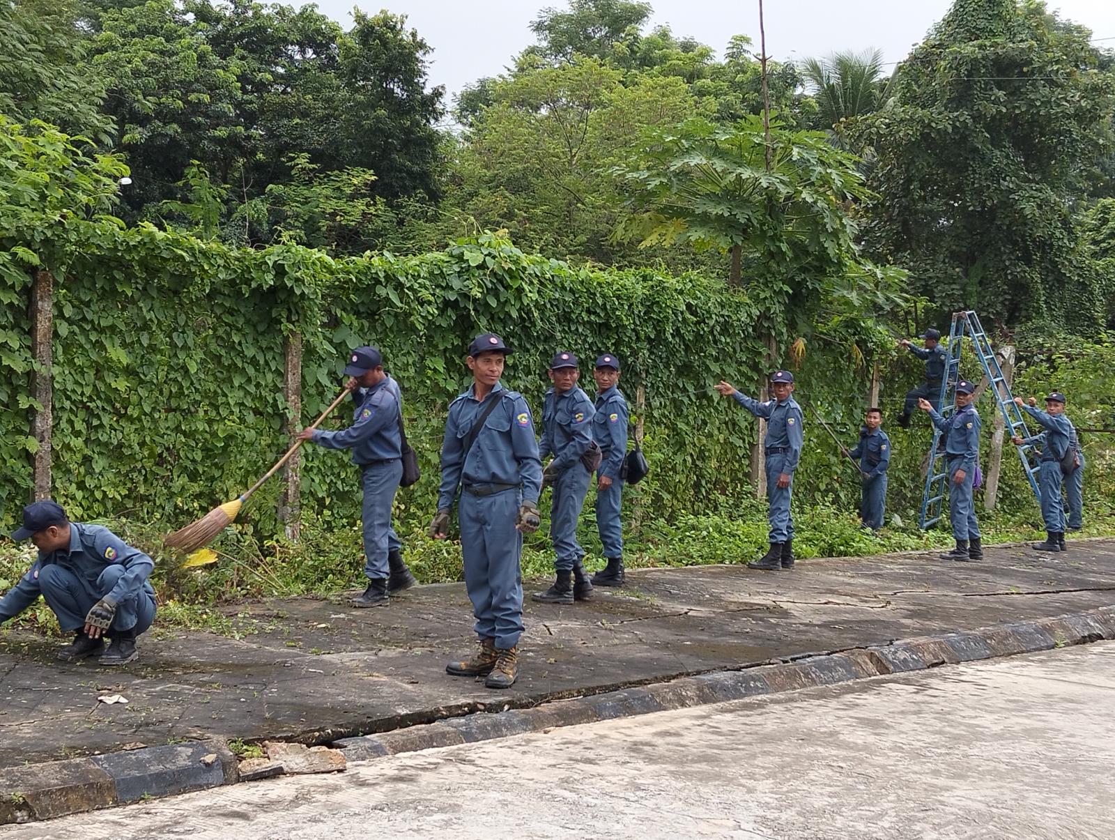 ဇမ္ဗူသီရိမြို့နယ်၊ မင်္ဂလာသိဒ္ဓိရပ်ကွက်ရှိ အမှတ် (၃) အခြေခံပညာမူလတန်းလွန်ကျောင်း ပတ်ဝန်းကျင်သန့်ရှင်းသာယာလှပစေရေးအတွက် မြို့နယ်စီမံခန့်ခွဲရေးနှင့် အုပ်ချုပ်ရေးကော်မတီဥက္ကဋ္ဌ ဦးဇေနော်ဝင်းနှင့် အဖွဲ့ဝင် ဗိုလ်မှူး ပြည့်ဖြိုးအောင်တို့က ဇမ္ဗူသီရိမြို့နယ် အထွေထွေအုပ်ချုပ်ရေးဦးစီးဌာနမှ ဝန်ထမ်းများ၊ ဌာနဆိုင်ရာဝန်ထမ်းများ၊ မြန်မာနိုင်ငံရဲတပ်ဖွဲ့၊ မြန်မာနိုင်ငံမီးသတ်တပ်ဖွဲ့၊ စည်ပင်သာယာရေးအဖွဲ့များ၊ ဆရာ၊ ဆရာမများ၊ ရပ်ကွက်အုပ်ချုပ်ရေးမှူးနှင့်ရပ်မိရပ်ဖများ၊ ပြည်သူ့လုံခြုံရေးနှင့် အကြမ်းဖက်နှိမ်နှင်းရေးတပ်ဖွဲ့ဝင်များက မြို့နယ်အတွင်း သန့်ရှင်းသာယာလှပရေးအတွက် သစ်ပင်သစ်ကိုင်းများ ခုတ်ထွင် ရှင်းလင်းနေမှု များနှင့်သန့်ရှင်းရေးဆောင်ရွက်နေမှုများကို ကြည့်ရှုအားပေးခဲ့ကြကြောင်း သိရသည်။