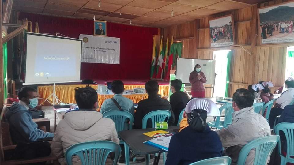 ကချင်ပြည်နယ် ပူတာအိုခရိုင် နောင်မွန်မြို့နယ်၌ မိခင်မှ ကလေးသို့ HIV ပိုးကူးစက်မှု ကာကွယ်ရေး စီမံချက်လုပ်ငန်းသင်တန်းကို ယနေ့နံနက် ၉ နာရီ ခန့်မှစ၍ လုံမောင်ခန်းမတွင် ကျင်းပခဲ့သည်။