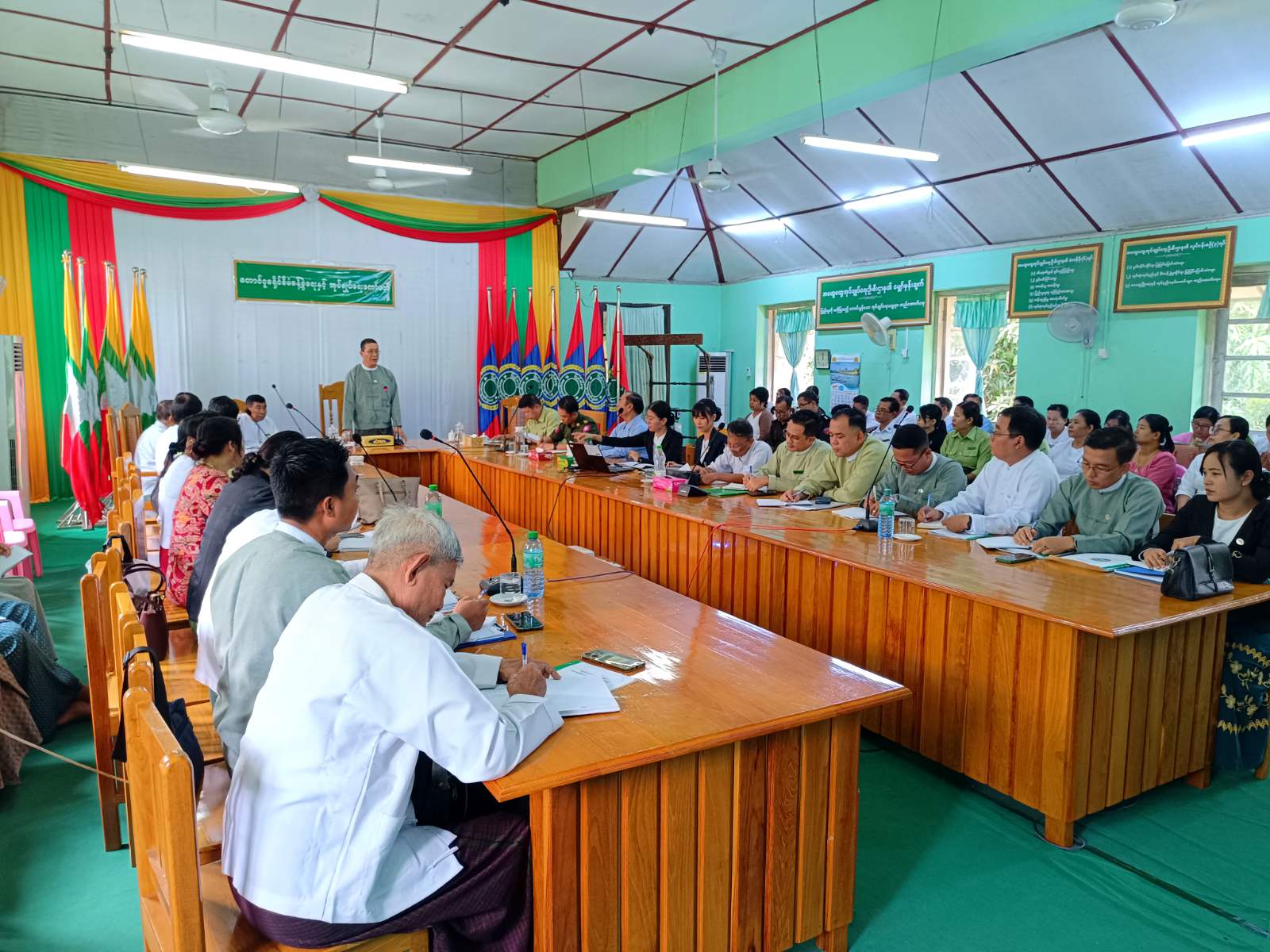 ပဲခူးတိုင်းဒေသကြီး၊ တောင်ငူခရိုင်၊ တောင်ငူမြို့၊ ခရိုင်အထွေထွေအုပ်ချုပ်ရေးဦးစီးဌာန၊ ဘုရင့်နောင်ခန်းမ၌ ယနေ့မွန်းတည့် ၁၂ နာရီအချိန်က ရွေးကောက်ပွဲဆိုင်ရာကိစ္စရပ်များ ရှင်းလင်းဆွေးနွေးခြင်း အခမ်းအနားကျင်းပသည်။