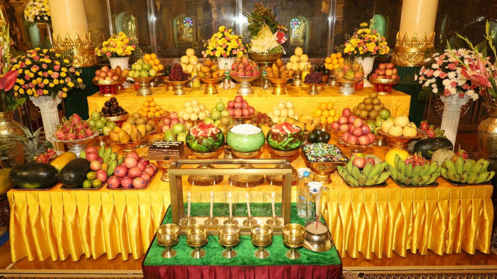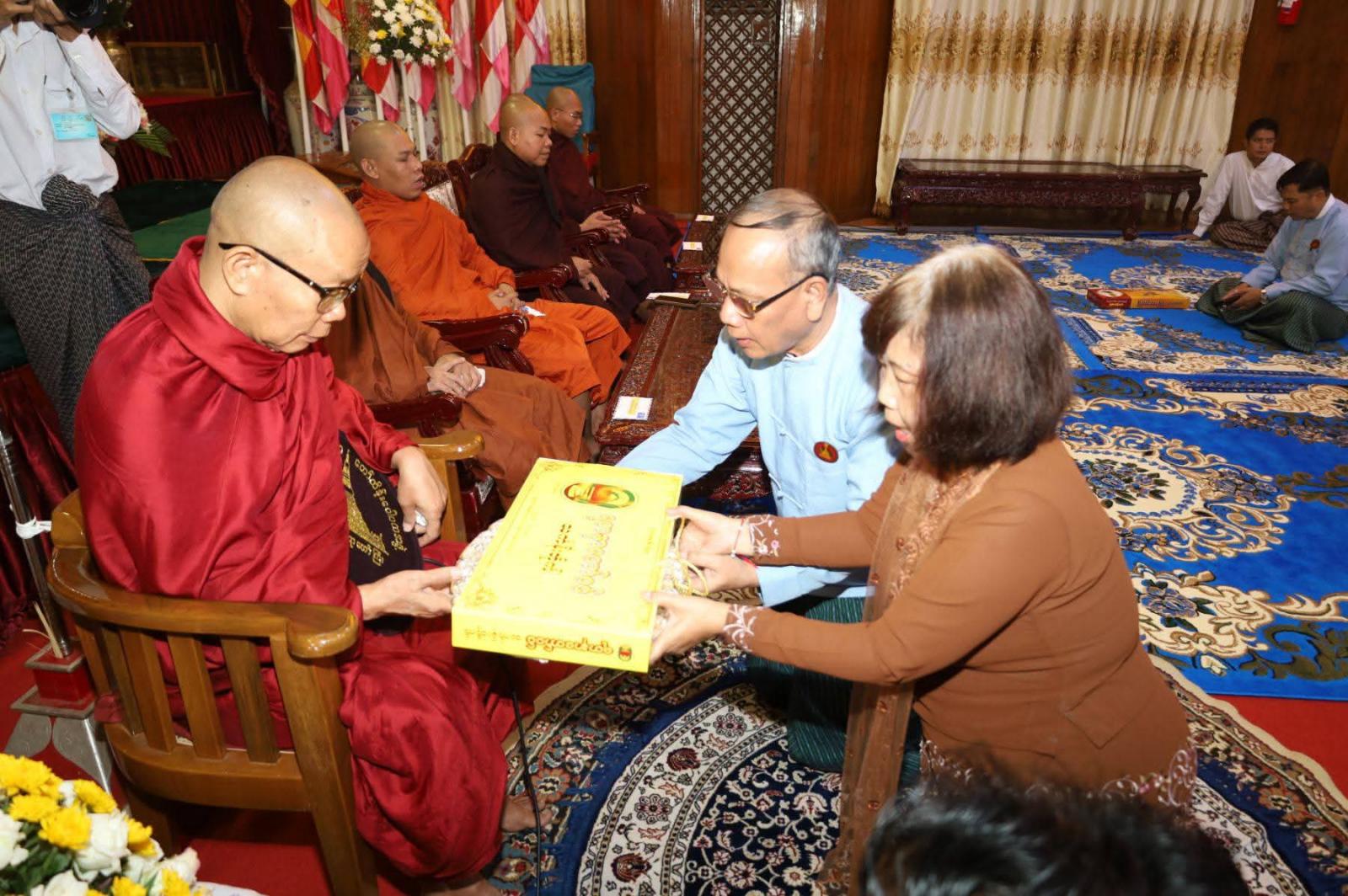 ယင်းနောက် သြ၀ါဒါစရိယဆရာတော်ကြီးနှင့် ပင့်သံဃာတော်များအား ဘဏ္ဍာတော်ထိန်းဂေါပကအဖွဲ့ဝင်များ၊ ဗုဒ္ဓဝေယျာဝစ္စအသင်းများ၊ ဝန်ထမ်းများနှင့် အလှူရှင်ဘုရားဖူးလာပြည်သူများက သင်္ဃန်းနှင့် လှူဖွယ်ဝတ္ထုများ ဆက်ကပ်လှူဒါန်းကြသည်။