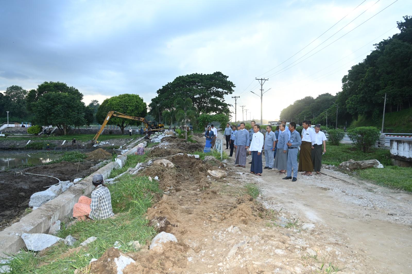 နေပြည်တော်ကောင်စီဥက္ကဋ္ဌ ဦးသန်းထွန်းသည် တာဝန်ရှိသူများနှင့်အတူ စက်တင်ဘာလ ၅ ရက်နေ့ ညနေပိုင်းတွင် ဇမ္ဗူသီရိမြို့နယ်ရှိ မင်္ဂလာကန် ငလျင်ဘေးဒဏ်ကြောင့် ထိခိုက်ပျက်စီးခဲ့သည့် ကန်ဘောင်များ၊ လျှောက်လမ်းများနှင့် လမ်းဘေးပလပ်ဖောင်းများ ပြုပြင်နေမှုအခြေအနေများကို ကြည့်ရှုစစ်ဆေးပြီး တာဝန်ရှိသူများအား လုပ်ငန်းများအပိုင်းလိုက် အမြန်ပြီးစီးအောင်ဆောင်ရွက်ရေး၊ မင်္ဂလာကန်အတွင်းအမှိုက်များ၊ ဒိုက်များမရှိစေရေး ရှင်းလင်းဆောင်ရွက်ရန်နှင့် သန့်ရှင်းသာယာလှပရေးဆောင်ရွက်ရန် မှာကြားခဲ့သည်။