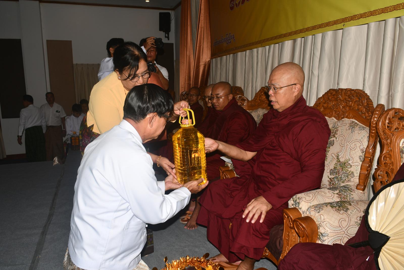 ရန်ကုန်တိုင်းဒေသကြီးဝန်ကြီးချုပ် ဦးစိုးသိန်းနှင့် တိုင်းဒေသကြီးအစိုးရအဖွဲ့ဝင်များသည် ယမန်နေ့ နံနက်ပိုင်းက ရွှေတိဂုံစေတီတော်မြတ်ကြီး၌ တော်သလင်းလပြည့်(ဂရုဓမ္မအခါတော်နေ့) အခမ်းအနားနှင့် အရှင်ကိန္ဒရာမကျောင်းတိုက်(ဓမ္မဒူတ)ကျောင်းရှိ ဗုဒ္ဓတက္ကသိုလ်ကျောင်းတိုက်တွင် သုဓမ္မာ၊ ရွှေကျင်၊ မူလဒွါရ၊ ဝေဠုဝန် ဂိုဏ်းလေးဂိုဏ်းရှိ သံဃာတော်များနှင့် သာသနာ့နွယ်ဝင် သီလရှင် ဆရာကြီး၊ ဆရာလေးများအား ဧကာဒသမအကြိမ် သောတာပန် ဆီအလှူတော်အခမ်းအနားသို့ တက်ရောက်ခဲ့ကြသည်။