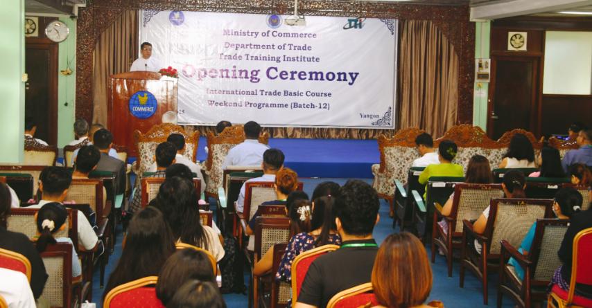 အခမ်းအနားတွင် စီးပွားရေးနှင့်ကူးသန်းရအပြည်ပြည်ဆိုင်ရာ ကုန်သွယ်မှုအခြေခံသင်တန်း အမှတ်စဉ် (၁၂)သင်တန်းဖွင့်ပွဲ အခမ်းအနားကို ယမန်နေ့ နံနက် ၁၀ နာရီခွဲတွင် ရန်ကုန်မြို့၊ စီးပွားရေးနှင့်ကူးသန်းရောင်းဝယ်ရေးဝန်ကြီးဌာန၊ ကုန်သွယ်ရေးဦးစီးဌာန၊ ပို့ကုန်သွင်းကုန်ရုံး၊ ညီလာခံခန်းမ၌ ကျင်းပခဲ့သည်။ောင်းဝယ်ရေးဝန်ကြီးဌာန ဒုတိယဝန်ကြီး ဦးမင်းမင်းက ယခုဖွင့်လှစ်ပို့ချမည့် သင်တန်းတွင် ကုန်သွယ်မှုနှင့် ရင်းနှီးမြှုပ်နှံမှု၊ နိုင်ငံတကာငွေကြေးပေးချေမှု၊ အကောက်ခွန်၊ ကုန်ပစ္စည်းအရည်အသွေး၊ မူပိုင်ခွင့်နှင့်စားသုံးသူအကာအကွယ်ပေးရေးဆိုင်ရာ လုပ်ငန်းနယ်ပယ်အသီးသီးရှိ ဥပဒေများ၊ လုပ်ထုံးလုပ်နည်းများနှင့် စည်းမျဉ်းစည်းကမ်းသတ်မှတ်ချက်များကို အဓိကထားသင်ကြားပို့ချပေးသွားမည်ဖြစ်သည့်အတွက် အကျိုးရှိမည့် သင်တန်းတစ်ခုဖြစ်ပါကြောင်း၊ သင်ကြားပို့ချမည့်ဘာသာရပ်များအား မိမိတို့ဝန်ကြီးဌာနအပြင် ကုန်သွယ်မှုနှင့်ဆက်နွယ်နေသော အခြားဝန်ကြီးဌာများမှ ဘာသာရပ်ဆိုင်ရာ ကျွမ်းကျင်သူများနှင့် ပြင်ပဘာသာရပ်ကျွမ်းကျင်သူ ပညာရှင်များမှ သင်ကြားပို့ချပေးသွားမည်ဖြစ်ပါကြောင်း၊ သင်တန်းကာလအတွင်း သင်တန်းသား၊