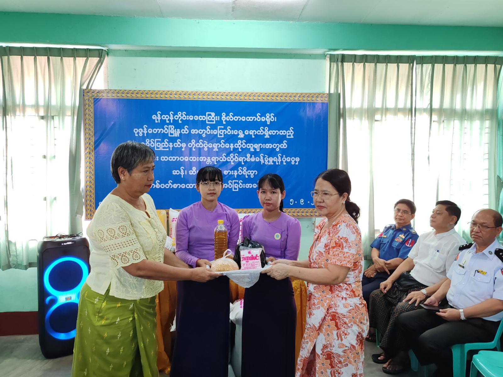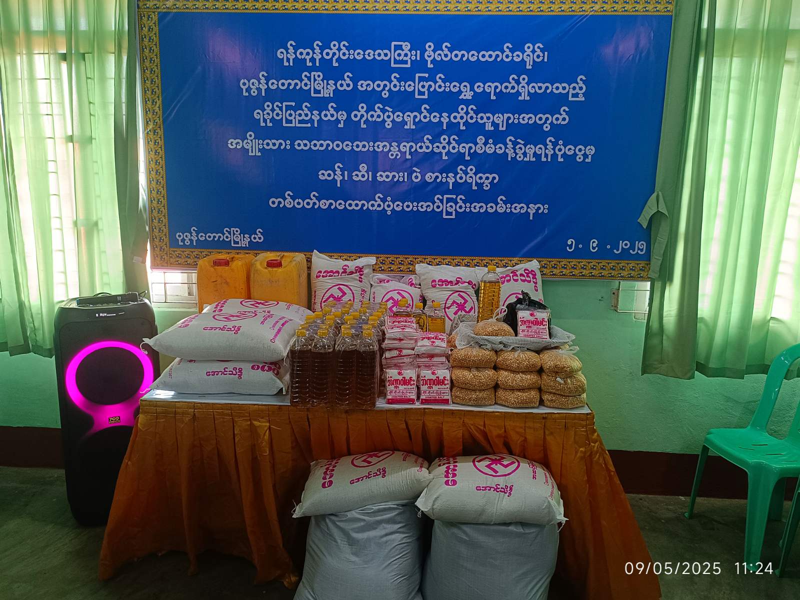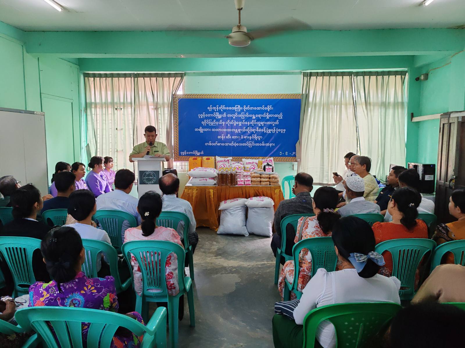 အဆိုပါအခမ်းအနားတွင် မြို့နယ်စီမံခန့်ခွဲရေးနှင့်အုပ်ချုပ်ရေးကော်မတီဥက္ကဋ္ဌ ဦးဇော်မိုးအောင်က အဖွင့်အမှာစကားပြောကြားပြီး ဆန်၊ ဆီ၊ ဆား၊ ပဲ စားသုံးကုန်ပစ္စည်းများ ထောက်ပံ့ပေးရသည့်အကြောင်းရင်းကို ဆွေးနွေးပြောကြားခဲ့သည်။