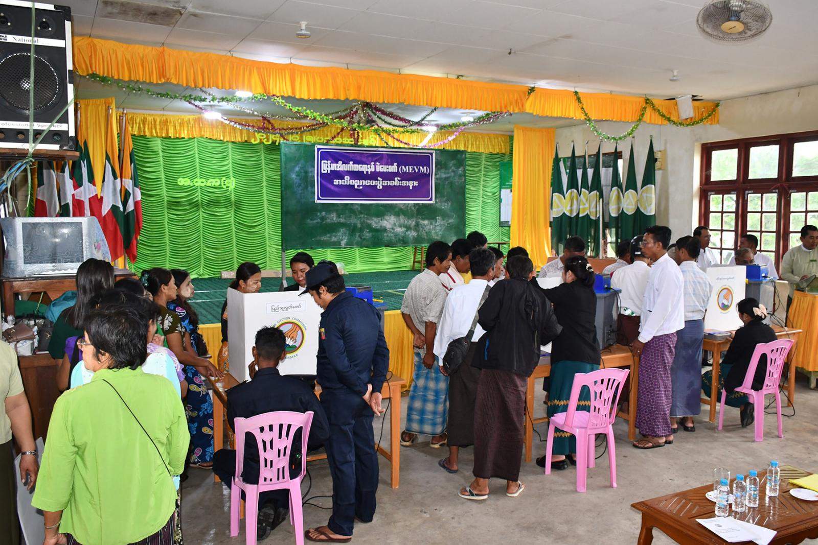 အသိပညာပေးရာတွင် မြိတ်ခရိုင်ရွေးကောက်ပွဲကျော်မရှင်အဖွဲ့ခွဲဥက္ကဋ္ဌ၊ ခရိုင်နှင့်မြို့နယ်ရွေးကောက်ပွဲကော်မရှင်အဖွဲ့ခွဲတို့မှ တာဝန်ရှိသူများက မြန်မာအီလက်ထရောနစ်မဲပေးစက်(MEVM)အကြောင်းသိကောင်းစရာများနှင့် မဲပေးစက်ဆိုင်ရာမဲပေးခြင်းလုပ်ငန်းများနှင့် စပ်လျဉ်း၍ရှင်းလင်းပြောကြားကြသည်။ ထို့နောက် မြန်မာအီလက်ထရောနစ်(MEVM) မဲပေးစက်အသုံးပြု၍ မဲပေးပုံအဆင့်ဆင့်ကို မြိတ်ခရိုင်ရွေးကောက်ပွဲအရာရှိ ဦးလှိုင်ဘွားနှင့်တာဝန်ရှိသူများက ရှင်းလင်းပြောကြားကြသည်။