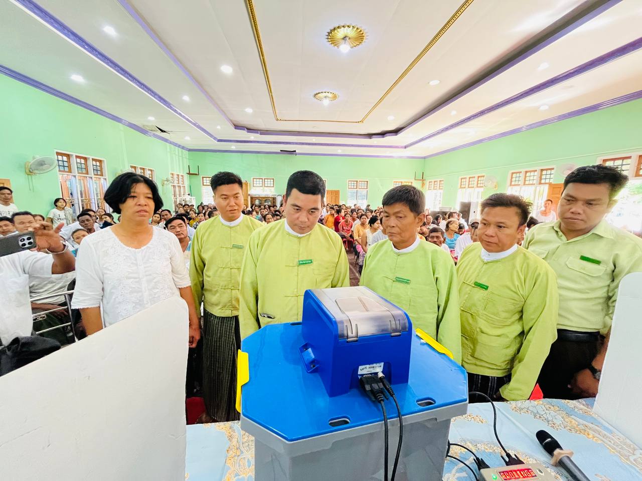 ဆက်လက်ပြီး ယနေ့နံနက်ပိုင်းက ဓနုံးကျေးရွာအုပ်စု၊ ယဉ်တော်စံကျေးရွာ၊ အောင်သိဒ္ဓိကပ်ကျော်ဓမ္မာရုံတွင် မဲဆန္ဒရှင်ပြည်သူများ ကျယ်ကျယ်ပြန့်ပြန့် သိရှိနိုင်ရေးအတွက် မြန်မာအီလက်ထရောနစ်မဲပေးစက်ဆိုင်ရာ အသိပညာပေးခြင်းနှင့် လက်တွေ့စမ်းသပ်မဲပေးခြင်းကို ကွင်းဆင်းဆောင်ရွက်ခဲ့ရာ အမရပူရမြို့နယ် ရွေးကောက်ပွဲကော်မရှင်အဖွဲ့ခွဲ ဥက္ကဋ္ဌနှင့်အဖွဲ့ဝင်များ၊ ဓနုံးကျေးရွာအုပ်စု၊ မြစ်ငယ်ရပ်ကွက်၊ ဥယျာဉ်တော်ကျေးရွာအုပ်စု၊ မြစ်လောင်းကျေးရွာအုပ်စု၊ တောင်သမန်ကျေးရွာအုပ်စုနှင့် စာတိုးကျေးရွာအုပ်စုတို့မှ ရပ်ကွက်အုပ်ချုပ်ရေးမှူးများနှင့်အဖွဲ့ဝင်များ၊ ရပ်ကွက်နေပြည်သူ (၁၉၄၈) ဦးတို့အား အမရပူရမြို့နယ် ရွေးကောက်ပွဲကော်မရှင်အဖွဲ့ခွဲမှ ဦးစီးအရာရှိ၊ ဒေါ်နန်းအေးအေးစိုးက မြန်မာအီလက်ထရောနစ်မဲပေးစက်တည်ဆောက်ပုံ၊ မဲပေးခြင်း လုပ်ငန်းစဉ်အဆင့်ဆင့်အား ရှင်းလင်းပြောကြားခဲ့ပြီး တစ်ဦးချင်းကိုယ်တိုင် စမ်းသပ်မဲပေးခြင်းများကို ဆောင်ရွက်ခဲ့ကြောင်း မြို့နယ်ကော်မရှင်အဖွဲ့ခွဲ ထံမှသိရသည်။