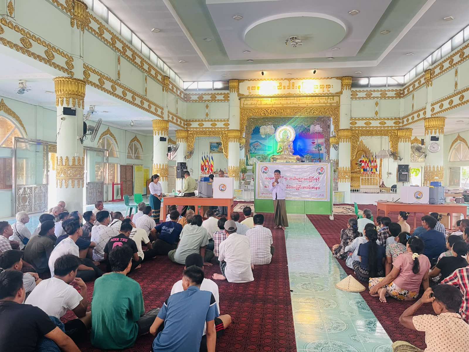 မဲပေးစက်ဆိုင်ရာအသိပညာပေးခြင်းနှင့် လက်တွေ့စမ်းသပ်မဲပေးခြင်း အခမ်းအနားကို ချမ်းအေးသာစံမြို့နယ်၊ ကန်ကောက်ရပ်ကွက်၊ ဝါခင်းကုန်းဘုရားဝင်းအတွင်းရှိ မဟာမုဒိဓာတ်ပေါင်းစုံ ဓမ္မာရုံအတွင်း၌ စက်တင်ဘာ ၈ ရက်နေ့ နံနက်ပိုင်းက ကျင်းပခဲ့သည်။