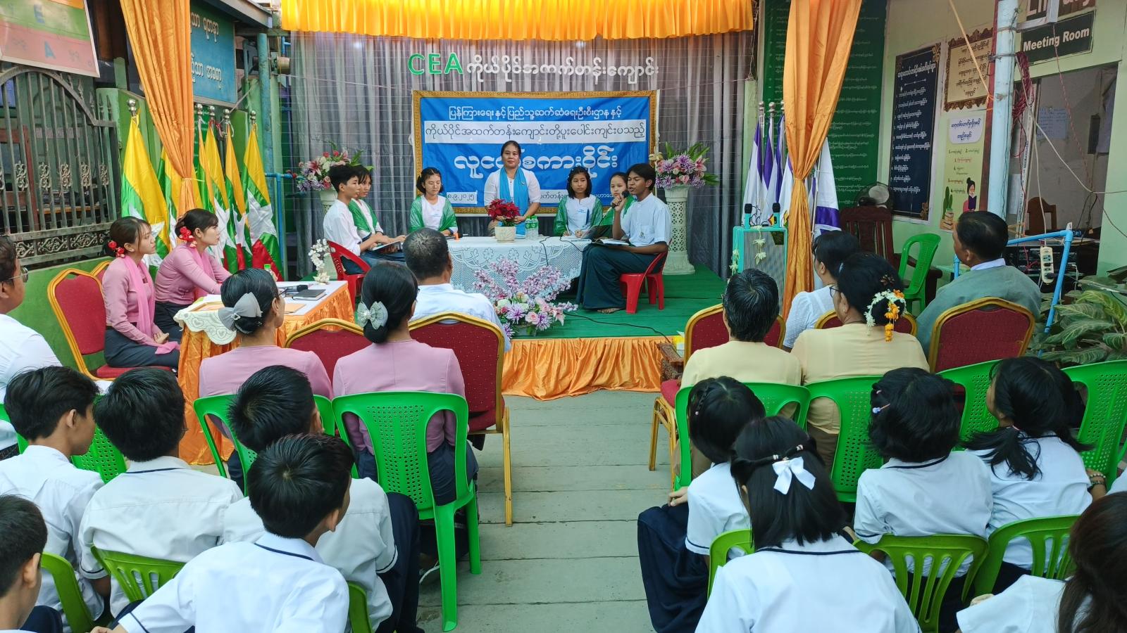 မန္တလေးတိုင်းဒေသကြီး၊ မဟာအောင်မြေမြို့နယ်၊ CEA ကိုယ်ပိုင်အထက်တန်းကျောင်း၌ လူငယ်များဘက်စုံဖွံ့ဖြိုးတိုးတက်စေရန် လူငယ်စကားဝိုင်းကို စက်တင်ဘာ ၈ ရက်နေ့က ကျင်းပသည်။