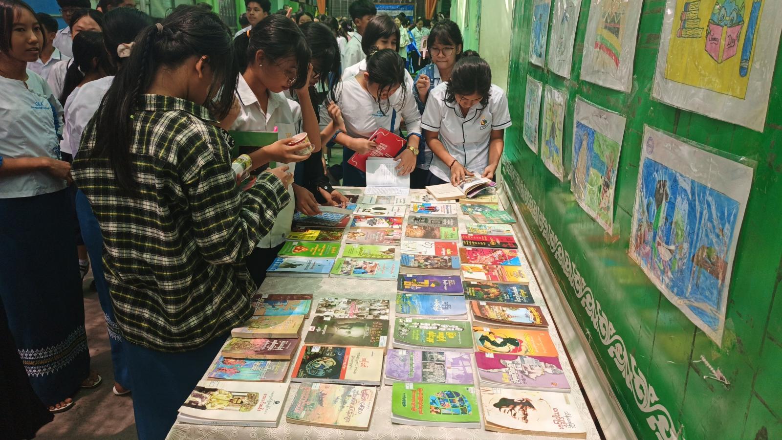 တက်ရောက်လာသော ကျောင်းသား၊ သူလေးများက ဆွေးနွေးချက်များအပေါ် သိလိုမှုများ မေးမြန်းရာ ဆွေးနွေးပေးခဲ့သော ကျောင်းသား/ကျောင်းသူများက ပြန်လည်ဖြည့်စွက်ဆွေးနွေးခဲ့ကြပြီးနောက် ကျောင်းသား/ကျောင်းသူများသည် ပြသထားသော အသိပညာပေးနံရံကပ်စာစောင်များနှင့် စာအုပ်စာစောင်များအား စိတ်ပါဝင်စားစွာ လေ့လာကြည့်ရှုခဲ့ကြကြောင်း သိရသည်။