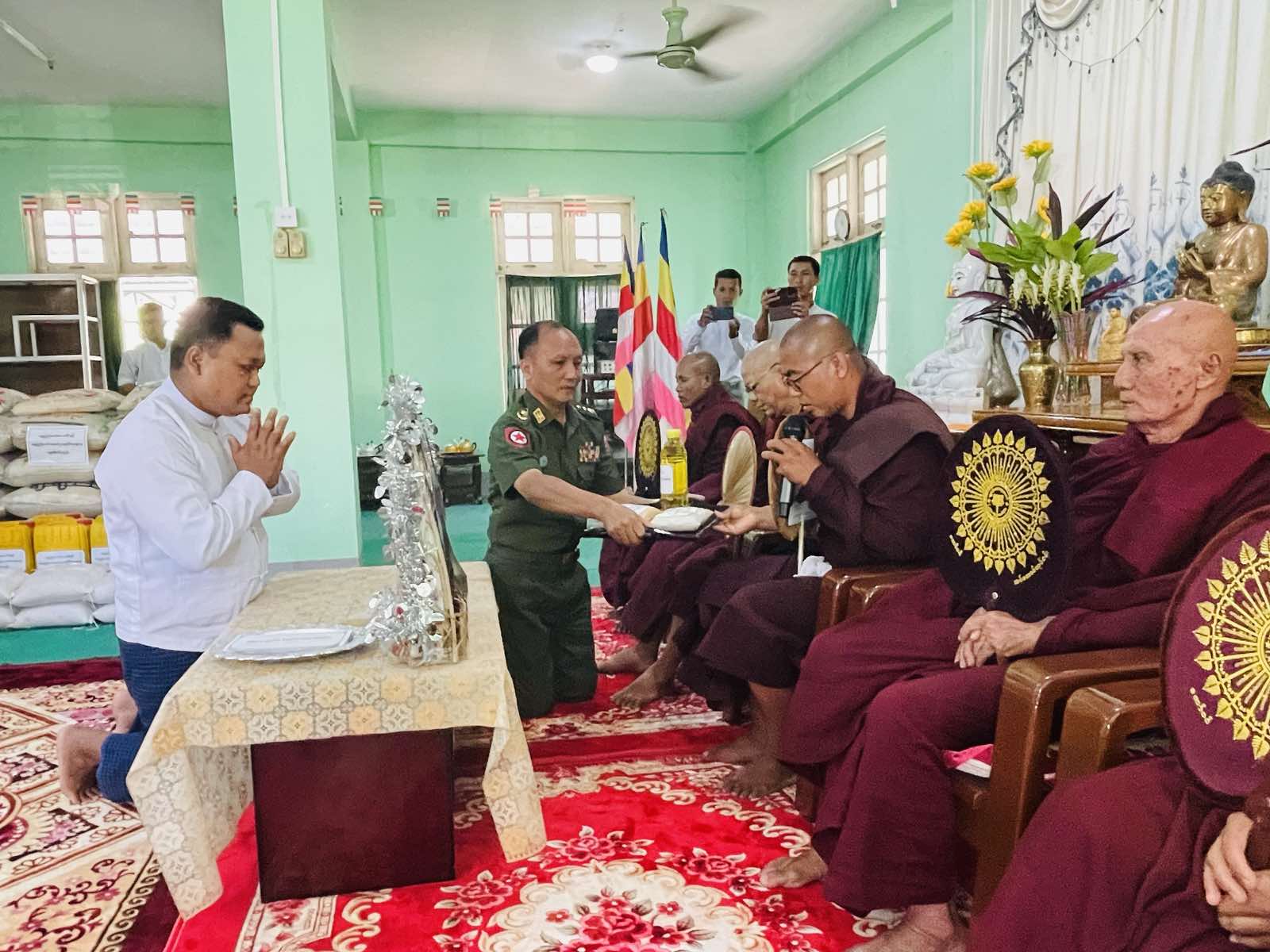 ဦးစွာ နေပြည်တော်ကောင်စီဝင် ဗိုလ်မှူးကြီး ရဲမိုးနှင့် တက်ရောက်လာသူများက အခမ်းအနားအား နမောတဿသုံးကြိမ်ရွတ်ဆို ဘုရားကန်တော့၍ အခမ်းအနားဖွင့်လှစ်ခဲ့ပြီး ဇမ္ဗူသီရိမြို့နယ်၊ နန်းဦးကျောင်းတိုက် စာချနာယကဆရာတော် ဘဒ္ဒန္တအဂ္ဂဓမ္မမထေရ်မြတ်ထံမှ ငါးပါးသီလခံယူဆောက်တည်ခြင်း၊ ဆရာတော်သံဃာတော်အရှင်သူမြတ်များထံမှ ပရိတ်တရားတော်များ နာယူကြည်ညိုခြင်း၊ ဆရာတော်သံဃာတော်များထံ လှူဖွယ်ပစ္စည်းများ ဆက်ကပ်လှူဒါန်းခြင်းနှင့် သံဃဒါနဆွမ်းလောင်းအသင်းများအတွက် ဆွမ်းဆန်တော်၊ ဆီနှင့် ပဲများ ပေးအပ်လှူဒါန်းခြင်းများ ပြုလုပ်ခဲ့သည်။