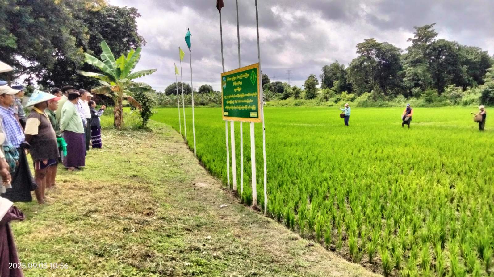 အဆိုပါ ကွင်းဆင်းကြည့်ရှုစစ်ဆေးရာတွင် ရွှေတောင်မြို့နယ်၊ ဆည်ကြီးကုန်းကျေးရွာအုပ်စု၊ ကွင်းအမှတ်(၄၁၂)၊ ရှမ်းတန်းကွင်းအတွင်းရှိ တောင်သူဦးတင်အောင်မိုး၏မိုးစပါး(အောင်နိုင်တိုး) လယ်မြေ(၅)ဧကတွင် မြို့နယ်စိုက်ပျိုးရေးမွေးမြူရေးကြီးကြပ်မှုကော်မတီ၏ကြီးကြပ်မှုဖြင့် ယူရီးယားသဘာဝမြေသြဇာ(ဘိုကာချီ)ရောပတ်ခြင်းအခမ်းအနား ဆောင်ရွက်နေမှုအခြေအနေများအား ပဲခူးတိုင်းဒေသကြီးအစိုးရအဖွဲ့ဝန်ကြီးချုပ်၏ လမ်းညွှန်မှာကြားချက်နှင်အညီ အထွက် ကောင်းမျိုးများပြောင်းလဲစိုက်နိုင်ရေး၊ မြေသြဇာနှင့်ပိုးသတ်ဆေးတို့အား တက်ရောက်လာသည့်တောင်သူများကို စနစ်တကျသုံးစွဲစေရေးတို့အားဆွေးနွေးမှာ ကြားခဲ့သည်။