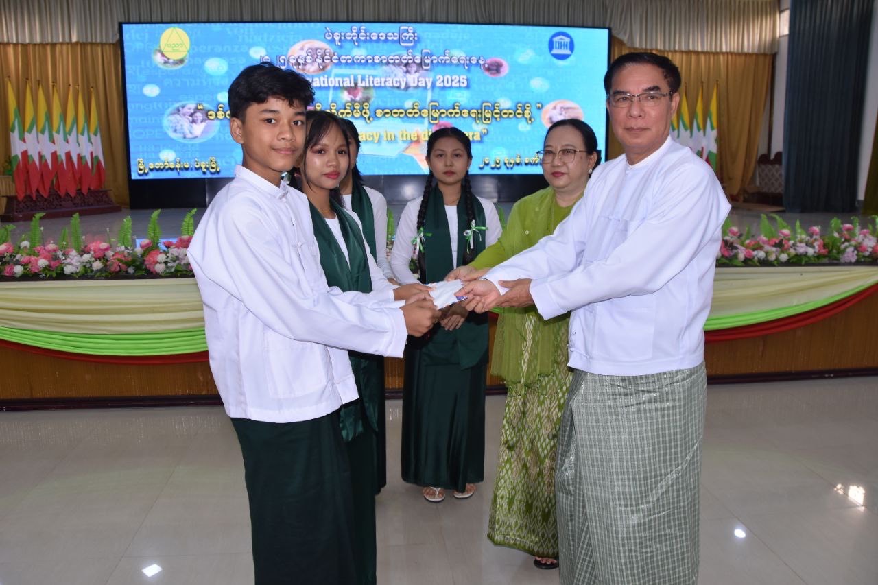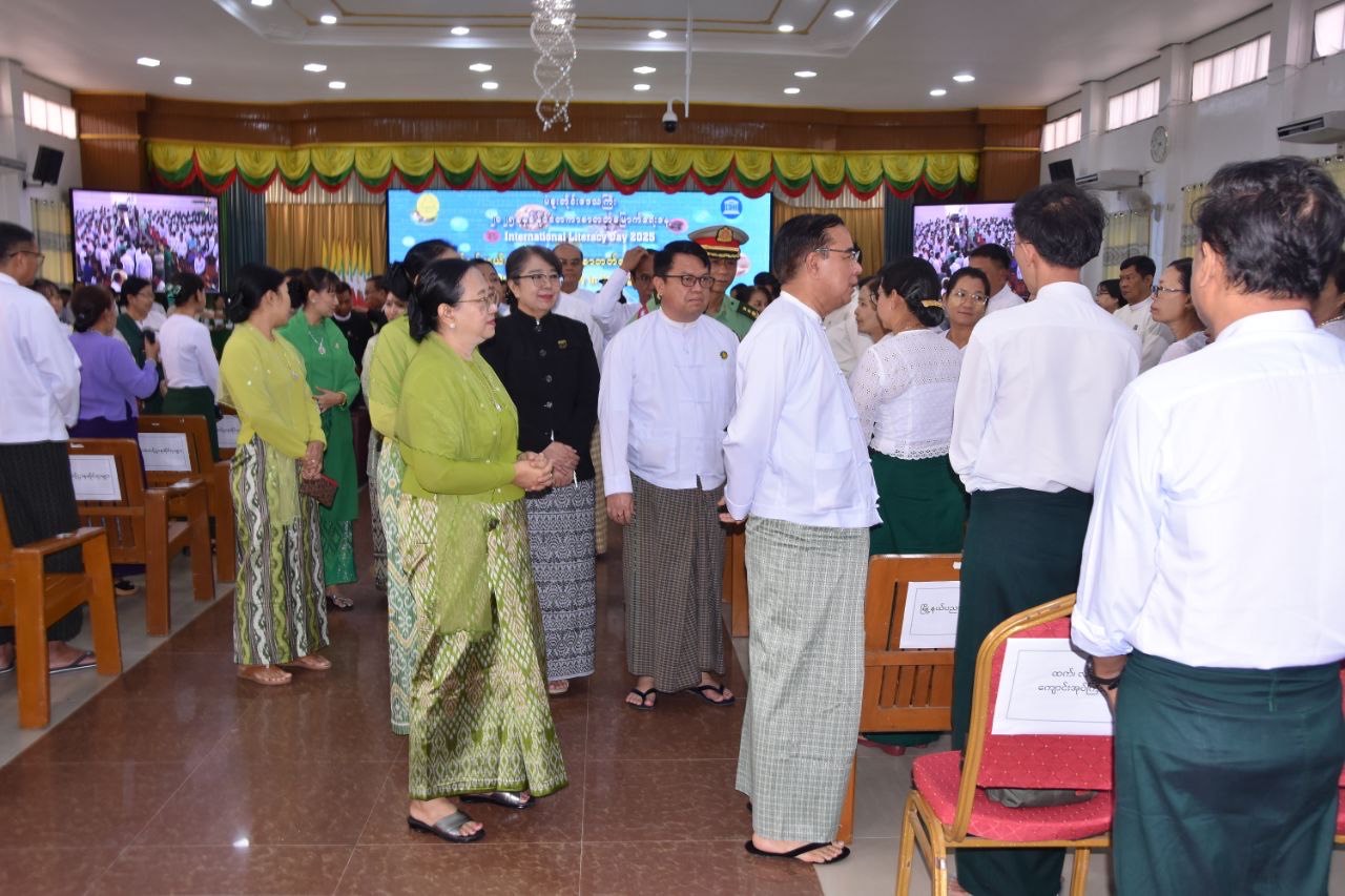 ယင်းနောက် တိုင်းဒေသကြီးဝန်ကြီးချုပ်နှင့်တာဝန်ရှိသူများက နိုင်ငံတကာစာတတ်မြောက်ရေးနေ့အထိမ်းအမှတ်(Video Clip)အား ကြည့်ရှုအားပေးခဲ့ကြသည်။ ၎င်းနောက် အမှတ်(၅)အခြေခံပညာအထက်တန်းကျောင်းမှ ကျောင်းသား/သူများက “အနာဂတ်ကို ပိုင်စိုးသူ” သီချင်းဖြင့် ဖျော်ဖြေတင်ဆက်ခဲ့ကြရာ တိုင်းဒေသကြီးဝန်ကြီးချုပ်နှင့်ဇနီးတို့က ဖျော်ဖြေတင်ဆက်ခဲ့ကြသည့် ကျောင်းသား/သူများအား ဂုဏ်ပြုဆုငွေများချီးမြှင့်ပေးအပ်ခဲ့ပြီး အခမ်းအနားတက်ရောက်လာကြသူများအား ရင်းရင်းနှီးနှီးနှုတ်ဆက်အားပေးစကားပြောကြားခဲ့ကြောင်း သတင်းရရှိသည်။