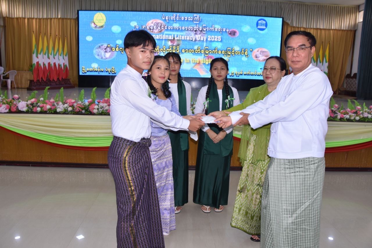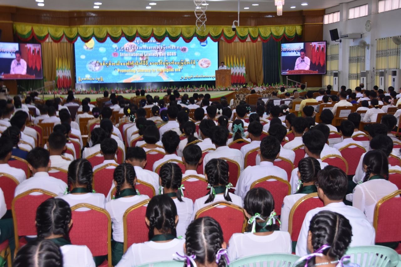 ရှေးဦးစွာ အမှတ်(၃)အခြေခံပညာအထက်တန်းကျောင်းမှ ကျောင်းသား/သူများက “စာတတ်မြောက်ရေး ဝိုင်းကူပေး” သီချင်းဖြင့် ၂၀၂၅ ခုနှစ်၊ နိုင်ငံတကာစာတတ်မြောက်ရေးနေ့အခမ်းအနားအား ဖွင့်လှစ်ပေးခဲ့ကြသည်။
