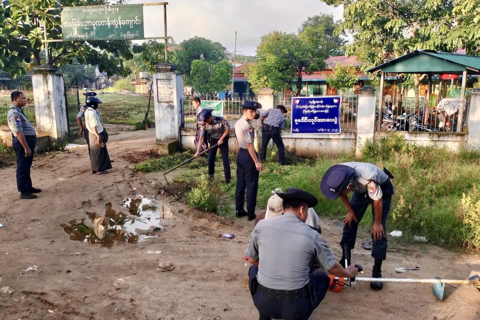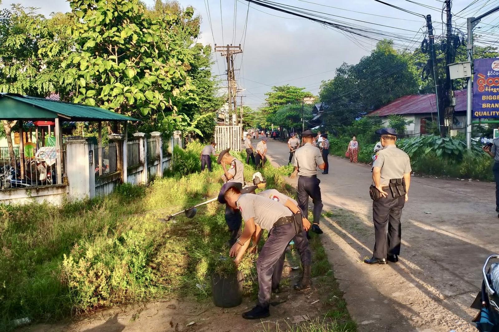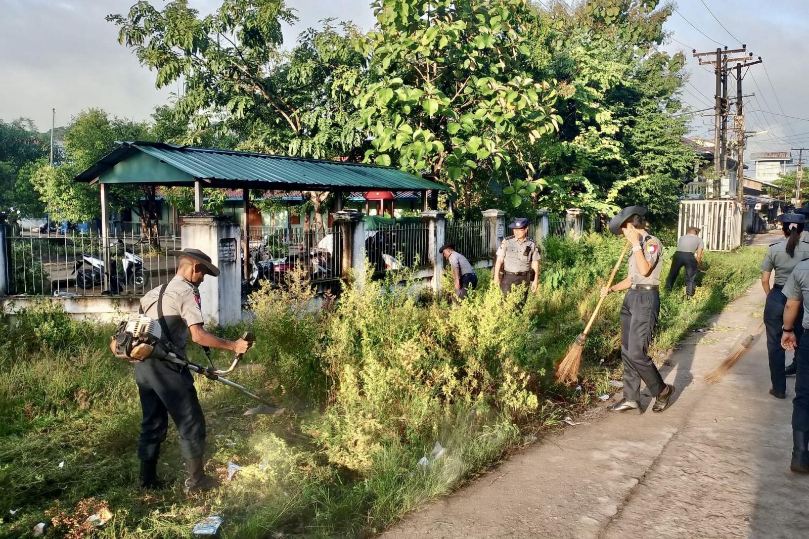စုပေါင်းသန့်ရှင်းရေးလုပ်ငန်းများပြုလုပ်ရာ၌ မြို့မရဲစခန်းမှ ဒုရဲမှူးစိန်လွင်ဦးဆောင်မှုဖြင့် အရာရှိ(၁၀)ဦး၊ တပ်ဖွဲ့ဝင်(၃၀)ဦးတို့က အခြေခံပညာမူလတန်းလွန်ကျောင်း(အလင်းရောင်)ကျောင်း ဥပဓိရုပ်ကောင်းမွန်ရေးနှင့် ကျောင်းဝန်းအတွင်း၊ အပြင်များတွင် သန့်ရှင်းသာယာလှပစေရေး ပေါင်းမြက်များ၊ ခြုံနွယ်များ၊ အမှိုက်များ၊ သစ်ရွက်ခြောက်များအား ဖယ်ရှားရှင်းလင်းသန့်ရှင်းခြင်းများပြုလုပ်ခဲ့ကြောင်း သိရသည်။