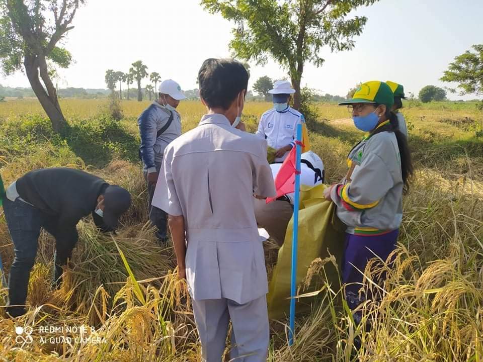 စစ်ကိုင်းတိုင်းဒေသကြီး၊ မုံရွာခရိုင်၊ ချောင်းဦးမြို့နယ် တောကျောင်းကြီးကျေးရွာအုပ်စု ကွင်းအမှတ် ၁၉၆၃.က၊ ဦးပိုင်အမှတ် ၂၇၀ ဧရိယာ ၁.၅၅ ဧကရှိ တောင်သူ ဦးသန်းငွေ၏ မနောသုခစပါးစိုက်ခင်းတွင် မြို့နယ်လယ်ယာမြေ စီမံခန့်ခွဲရေးနှင့်စာရင်းအင်းဦးစီးဌာနမှ ၂၀၂၀-၂၀၂၁ ခုနှစ်၊ မိုးစပါးအထွက်နှုန်းနှင့် စုစုအထွက်မှန်ကန်ရေး စစ်တမ်းကောက်ယူနိုင်ရန်အတွက် ကိုယ်စားပြု စံကွက်ရိတ်သိမ်းခြင်းကို ယနေ့ နံနက် ၉ နာရီခွဲ အချိန်က ကွင်းဆင်း ဆောင်ရွက်ခဲ့ကြောင်း သိရသည်။
