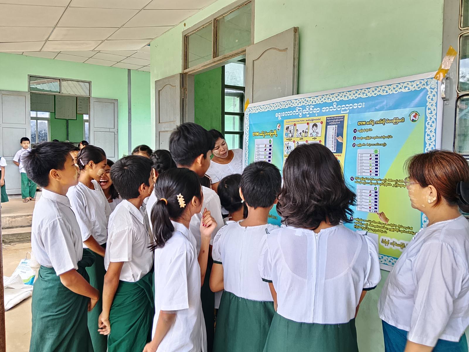 ဆက်လက်၍ ရွေးကောက်ပွဲဆိုင်ရာအသိပညာပေးနံရံကပ်စာစောင်ပြသခြင်း၊ အသိပညာဗဟုသုတတိုးပွားလာစေရန်ရည်ရွယ်ကာ စာအုပ်၊ စာစောင်များကိုပြသဆောင်ရွက်ပေးခဲ့ရာ ကျောင်းသား/သူများကစိတ်ဝင်စားစွာ လေ့လာဖတ်ရှုကြကြောင်းသိရသည်။
