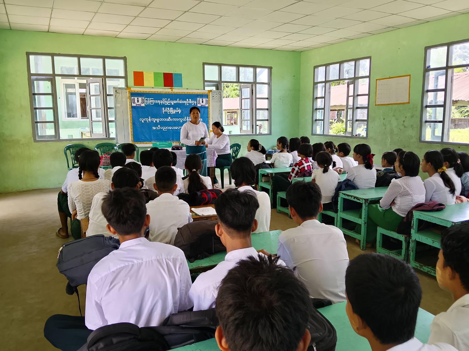 ရှေးဦးစွာတွင် ကျောင်းအုပ်ဆရာမကြီးဒေါ်ခင်မမက အဖွင့်အမှာစကားပြောကြားပေးခဲ့ပြီး လူမှုဝန်ထမ်းဦးစီးဌာနမှ ဒုဦးစီးမှူးဒေါ်သိမ့်သိမ့်ဝင်းက ကလေးသူငယ်ကာကွယ်စောင့်ရှောက်ပိုင်ခွင့်၊ မြို့နယ်ပြန်ကြားရေးနှင့်ပြည်သူ့ဆက်ဆံရေးဦးစီးဌာနမှ ဦးစီးအရာရှိဒေါ်ဆွေသက်အောင်က လူကုန်ကူးမှုတားဆီးနှိမ်နင်းရေးသိကောင်းစရာ အသိပညာပေးဟောပြောပေးသည်။