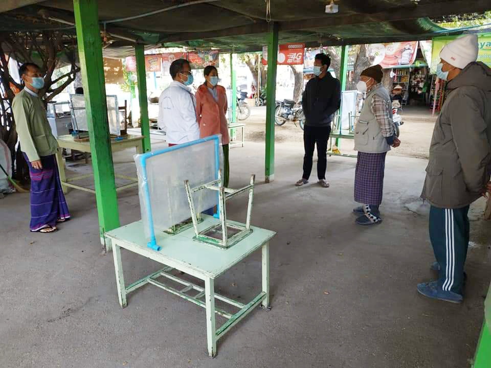 ထိုသို့ကွင်းဆင်းစစ်ဆေးရာတွင် ဒုတိယမြို့နယ်အုပ်ချုပ်ရေးမှူး ဦးမိုးဟိန်း၊ မြို့နယ်စည်ပင်သာယာ ရေးကော်မတီ အတွင်းရေးမှူး ဒေါ်ခိုင်ခိုင်စိုးနှင့် မြို့နယ်ပြည်သူ့ကျန်းမာရေးဦးစီးဌာနမှ တာဝန်ရှိသူများက လ္ဘက်ရည်ဆိုင်များနှင့် စားသောက်ဆိုင်များတွင် အပူချိန်တိုင်းကိရိယာများနှင့် လက်ဆေးဘေလ်စင်များ ထားရှိမှု၊ လေဝင်လေထွက် ကောင်းမွန်မှု၊ သတ်မှတ်အကွာအဝေးနှင့်အညီ ပြင်ဆင်ထားရှိမှု၊ အသိပညာပေး ဗီနိုင်းများ ချိတ်ဆွဲပြသထားမှုအခြေအနေများကို ကွင်းဆင်းကြည့်ရှုစစ်ဆေးခဲ့ကြသည်။