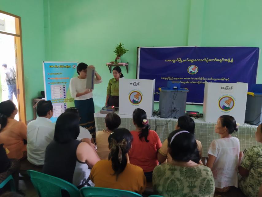 ရန်ကုန်ဒေသကြီး၊ ကမာရွတ်ခရိုင်၊ ကမာရွတ်မြို့နယ်၌ ဒေသခံမဲဆန္ဒရှင်ပြည်သူများပူးပေါင်းပါဝင်မှုဖြင့် မြန်မာ့အီလက်ထရေနစ်မဲပေးစက်ဆိုင်ရာ အသိပညာပေးဆွေးနွေးပွဲနှင့် လက်တွေ့စမ်းသပ်မဲပေးခြင်းအခမ်းအနားကို ယမန်နေ့နံနက်ပိုင်းက အမှတ်(၇)ရပ်ကွက်၊ အမှတ်(၁၄)အခြေခံပညာမူလတန်းကျောင်း၌ ကျင်းပခဲ့သည်။