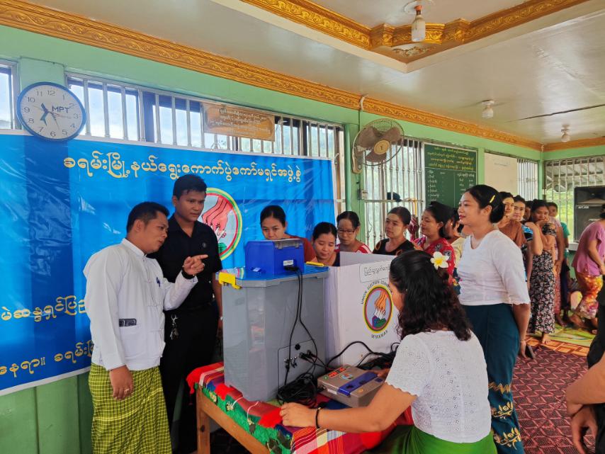 ရန်ကုန်တိုင်းဒေသကြီး၊ သန်လျင်ခရိုင်၊ ခရမ်းမြို့နယ်ရွေးကောက်ပွဲကော်မရှင်အဖွဲ့ခွဲမှ မဲဆန္ဒရှင်ပြည်သူများအား (MEVM)မဲပေးစက်ဆိုင်ရာအသိပညာပေးခြင်းနှင့် လက်တွေ့စမ်းသပ်မဲပေးခြင်းများကို ယမန်နေ့နံနက်(၉)နာရီအချိန်က အမှတ်(၇)ရပ်ကွက်၊ သောကငြိမ်းအေးစေတီဓမ္မာရုံ၌ ကျင်းပပြုလုပ်ခဲ့သည်။