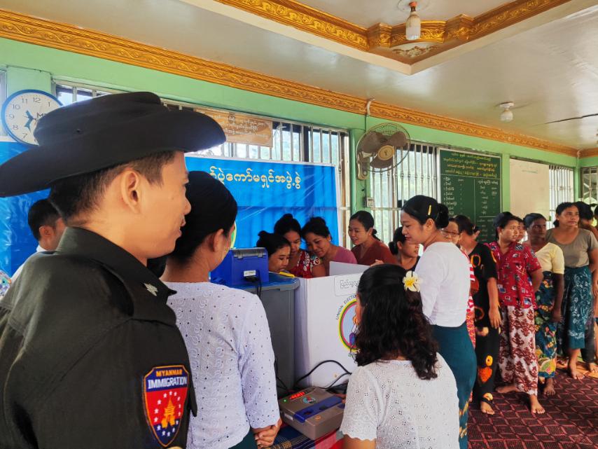 လက်တွေ့စမ်းသပ်မဲပေးခြင်းဆိုင်ရာ အသိပညာပေးအခမ်းအနားသို့ မဲဆန္ဒရှင်ပြည်သူ စုစုပေါင်း(၁၅၀၀)ဦးခန့်တက်ရောက်ခဲ့ကြပြီး တက်ရောက်လာကြသည့်မဲဆန္ဒရှင်များက လက်တွေ့ စမ်းသပ်မဲပေးခဲ့ကြရာ မြို့နယ်ရွေးကောက်ပွဲကော်မရှင်အဖွဲ့ခွဲဥက္ကဋ္ဌနှင့် အဖွဲ့ဝင်များ၊ တာဝန်ရှိသူများကကြည့်ရှုခဲ့ကြောင်း သိရသည်။
