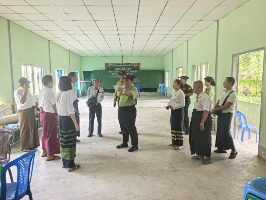 ထိုသို့ကြည့်ရှုစစ်ဆေးရာတွင် ခရိုင်စီမံခန့်ခွဲရေးနှင့် အုပ်ချုပ်ရေးကော်မတီဥက္ကဋ္ဌဦးကောင်းညွန့်နှင့် အဖွဲ့ဝင်ဒုတိယဗိုလ်မှူးကြီးရန်နိုင်ကျော်၊ မြို့နယ်စီမံခန့်ခွဲရေးနှင့် အုပ်ချုပ်ရေး ကော်မတီဥက္ကဋ္ဌဦးထူးကျော်နှင့်အဖွဲ့ဝင် ဗိုလ်မှူးဝင်းကျော်ဦး၊ မြို့နယ်ရွေးကောက်ပွဲကော်မရှင်အဖွဲ့ခွဲမှ မြို့နယ်ရွေးကောက်ပွဲအရာရှိနှင့် အဖွဲ့ဝင်များက မြို့နယ်အတွင်း ဆန္ဒမဲပေးပိုင်ခွင့်ရှိသူများအားလုံး လွယ်ကူစွာမဲပေးနိုင်ရေးအတွက် ရပ်ကွက်များအလိုက်မဲရုံတည်ဆောက်မည့်မြေနေရာများလျာ ထားမှုအခြေအနေကို ကွင်းဆင်းကြည့်ရှုစစ်ဆေးခဲ့ပြီးနောက် သက်ဆိုင်ရာရပ်ကွက်အုပ်ချုပ်ရေးမှူးများနှင့် ရပ်ကွက်ကော်မရှင်အဖွဲ့ခွဲ၏ တင်ပြချက်များကို ပေါင်းစပ်ညှိနှိုင်း ဆောင်ရွက်ပေးခဲ့သည်။