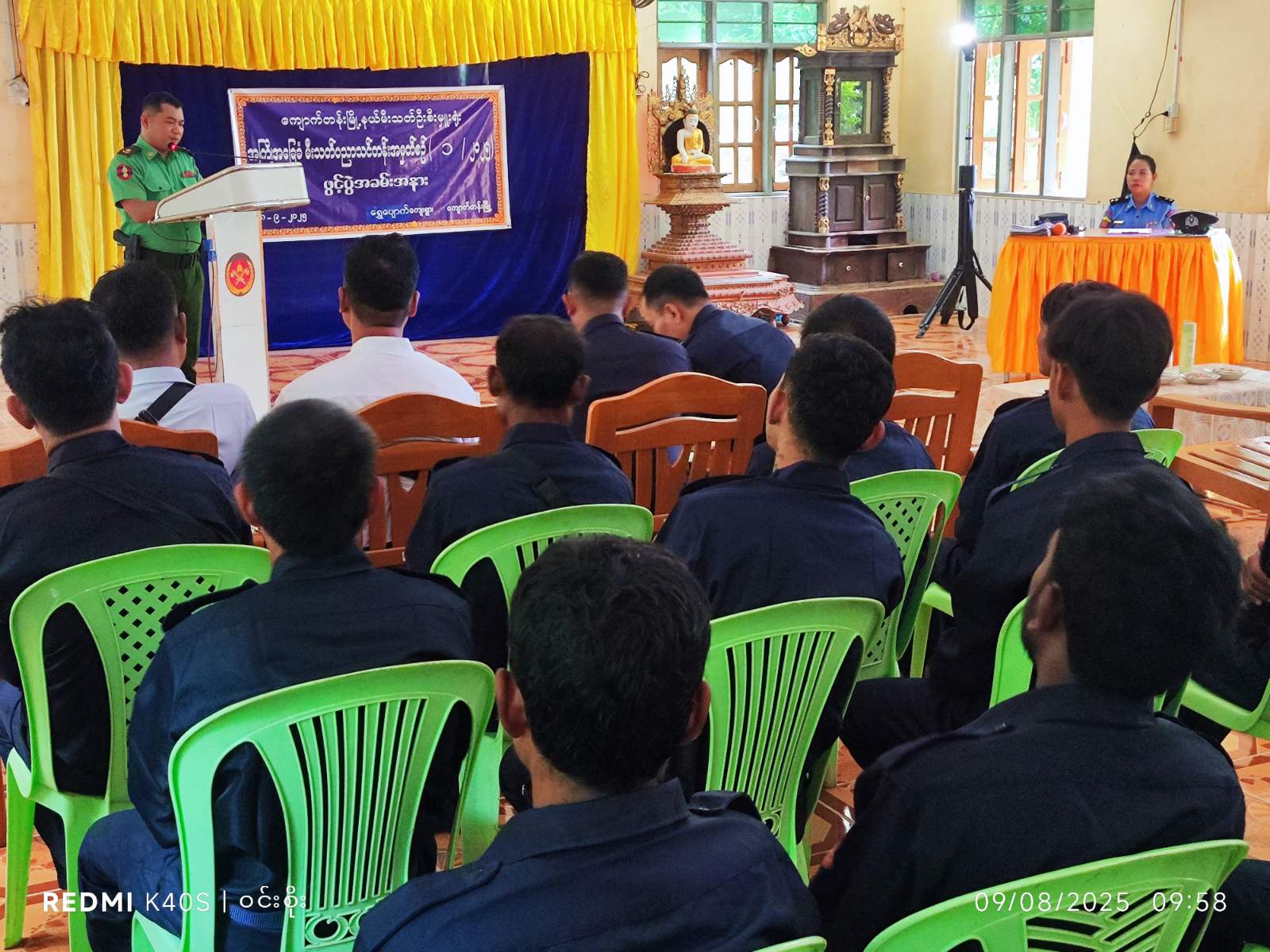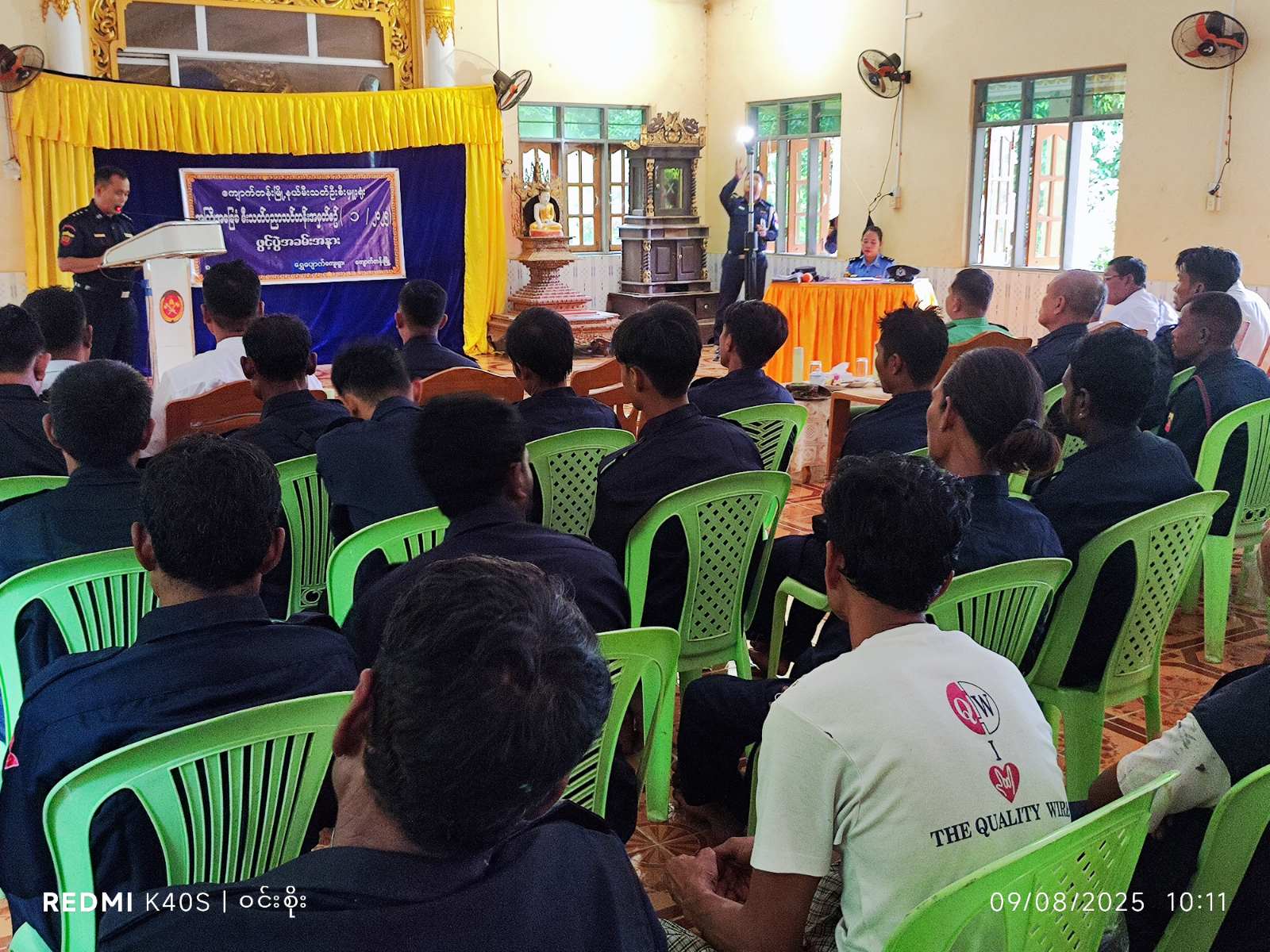 ရန်ကုန်တိုင်းဒေသကြီး သန်လျင်ခရိုင် ကျောက်တန်းမြို့နယ် မီးသတ်ဦးစီးဌာနမှ အကြိုအခြေခံမီးသတ်ပညာသင်တန်းအမှတ်စဥ် (၁/၂၀၂၅) ဖွင့်ပွဲအခမ်းအနားကို ယမန်နေ့ နံနက်(၁၀)နာရီအချိန်က ကျောက်တန်းမြို့နယ် ရွှေပျောက်ကျေးရွာရှိ ရတနာမြိုင်သာယာဘုန်းတော်ကြီးကျောင်းဓမ္မာရုံ၌ ကျင်းပခဲ့သည်။