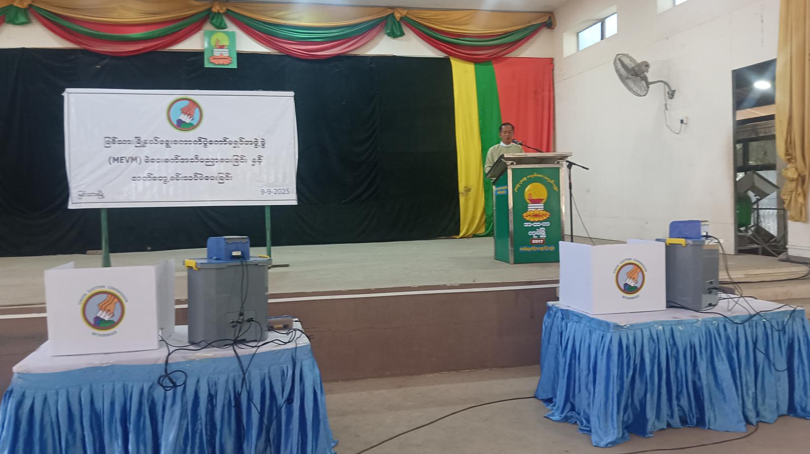 မန္တလေးတိုင်းဒေသကြီး၊ ကျောက်ဆည်ခရိုင်၊ မြစ်သားမြို့နယ် မြို့နယ်ရွေးကောက်ပွဲကော်မရှင်အဖွဲ့ခွဲမှ ပါတီစုံအထွေထွေရွေးကောက်ပွဲတွင် ဆန္ဒမဲပေးကြမည့် မဲဆန္ဒရှင်ပြည်သူများအနေဖြင့် မြန်မာအီလက်ထရော နစ်မဲပေးစက်ဖြင့် လွယ်ကူစွာ ဆန္ဒမဲပေးတတ်စေရန်ရည်ရွယ်၍ မြန်မာအီလက်ထရောနစ် (MEVM) မဲပေးစက်အကြောင်း အသိပညာပေးခြင်းနှင့် လက်တွေ့စမ်းသပ်မဲပေးမှုသရုပ်ပြသခြင်းကို စက်တင်ဘာ ၉ ရက် မွန်းလွဲ ၁ နာရီက ကူမဲမြို့ အခြေခံပညာအထက်တန်းကျောင်း အောင်ဆန်းခန်းမ၌ ပြုလုပ်ခဲ့သည်။