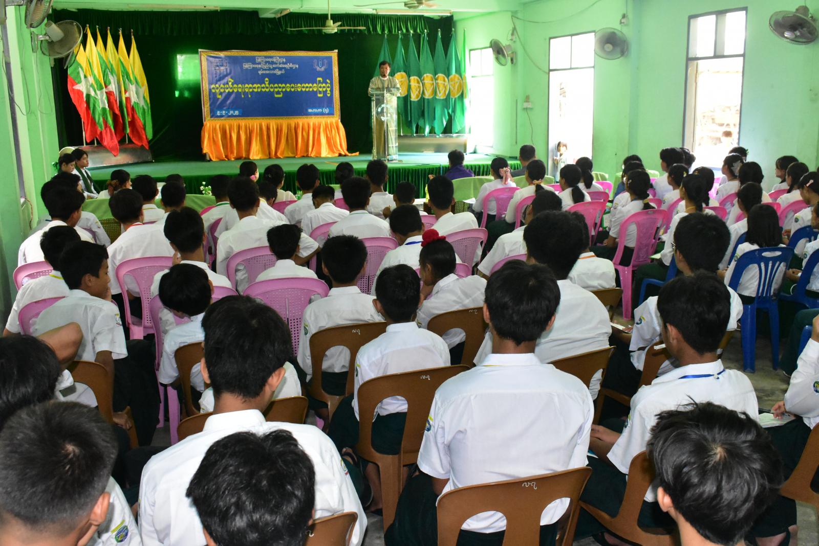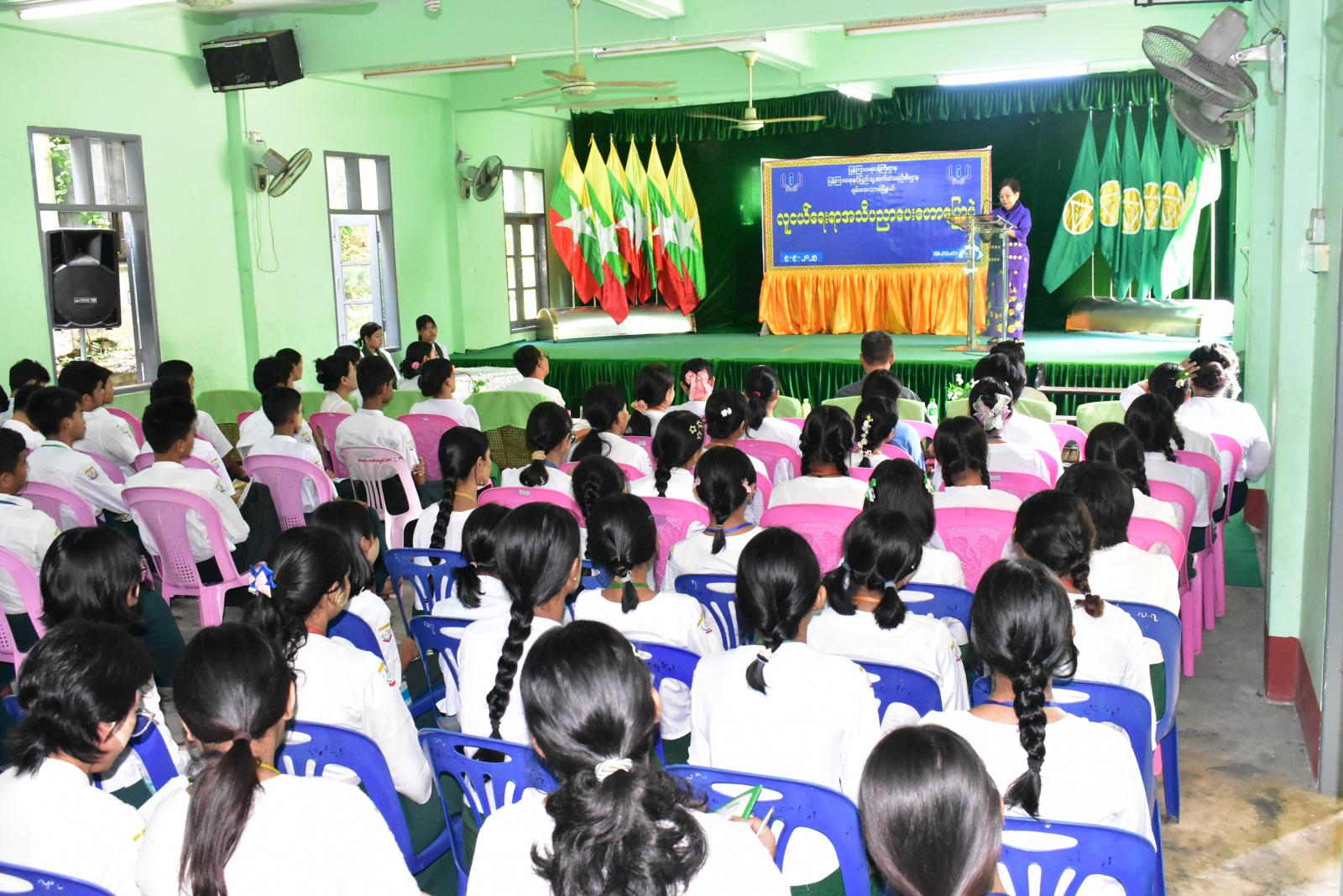 ဆက်လက်ပြီး ပြန်ကြားရေးနှင့်ပြည်သူ့ဆက်ဆံရေးဦးစီးဌာနမှ ဦးစီးအရာရှိ ဦးထွန်းထွန်းနိုင်မှ ကျောင်းသားလူငယ်များ အသိပညာဖွံ့ဖြိုးတိုးတက်စေရန်နှင့် ဥာဏ်ရည်မြင့်မားစေရန်အတွက် လူငယ်နှင့်သက်ဆိုင်သည့် အကြောင်းအရာများ၊ လူငယ်များ၏ဘဝကို ဖျက်ဆီးစေနိုင်သည့် မူးယစ်ဆေးဝါးများအကြောင်းနှင့် ကျောင်းသားလူငယ်များအား ကျန်းမာရေးဗဟုသုတ အကြောင်းအရာများကို ဆွေးနွေးဟောပြောခဲ့ပြီး ကျောင်းသား၊ကျောင်းသူများသည် ဟောပြောခဲ့သည့်အကြောင်းအရာများမှ သိရှိလိုသည်များကို မေးမြန်းခဲ့ရာ ဦးထွန်းထွန်းနိုင်မှ ပြန်လည်ဖြေကြားခဲ့သည်။ ထို့နောက် ကျောင်းအုပ်ဆရာမကြီး ဒေါ်နိုင်နိုင်ထွန်းမှ ကျေးဇူးတင်စကားပြောကြားခဲ့သည်။