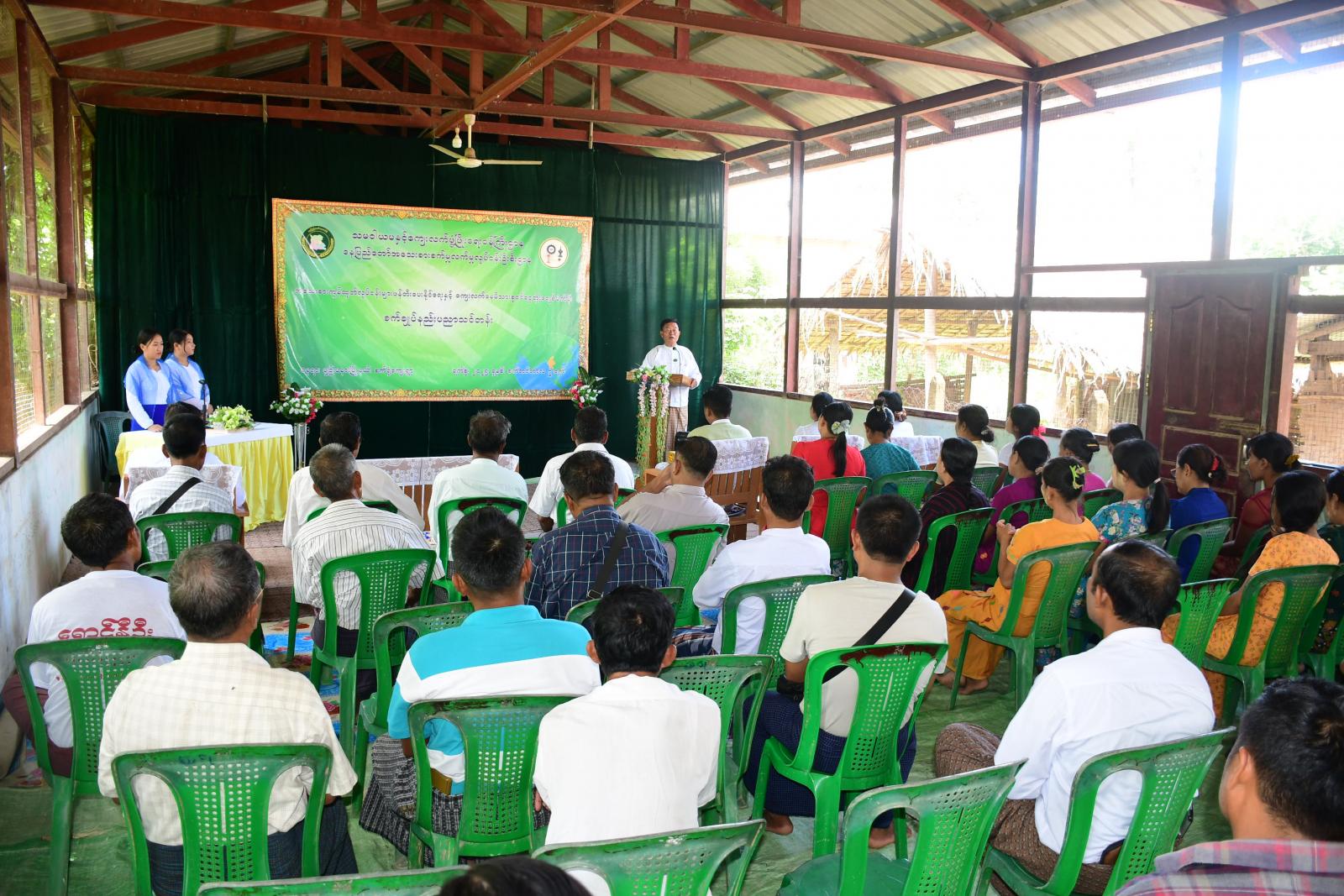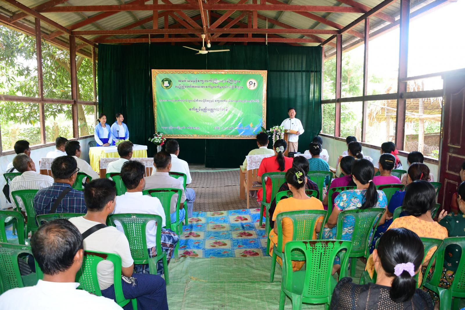 အခမ်းအနားတွင် နေပြည်တော်ကောင်စီဝင် ဦးမင်းဦးက နေပြည်တော်ကောင်စီအစီအစဉ်ဖြင့် သဘာဝဘေးဒဏ်သင့် ကျေးရွာများကို အဓိကဦးစားပေး၍ အသက်မွေးပညာသင်တန်းများကို ဖွင့်လှစ်ပေးပြီး လုပ်ငန်းထူထောင်နိုင်ရန်အတွက် ဆောင်ရွက်ပေးလျက်ရှိကြောင်း၊ အမျိုးသမီးအများစုသည် မြန်မာ့ယဉ်ကျေးမှုနဲ့ လျော်ညီသည့်ဝတ်စုံများ ချုပ်လုပ်ဝတ်ဆင်သည့်အတွက် စက်ချုပ်လုပ်ငန်းများ တစ်ခေတ် ပြန်လည်အောင်မြင်နေပြီဖြစ်ကြောင်း၊ အထည်ချုပ်လုပ်ငန်း များသည် စီးပွားရေးအတွက် တစ်စိတ်တစ်ပိုင်းအားဖြင့် အထောက်အကူပြုရုံမက အမျိုးသမီးများ အတွက်လည်း အလုပ်အကိုင်အခွင့်အလမ်းများနှင့် မိမိတို့အိမ်မှုကိစ္စများအပြင် အိုးမကွာအိမ်မကွာဖြင့် တစ်ဖက်တစ်လမ်းမှ ဝင်ငွေရရှိအောင် ဆောင်ရွက်နိုင်ရန် စက်ချုပ်နည်းပညာကို သင်ကြားပေးပြီး စက်ချုပ်လုပ်ငန်း လုပ်ကိုင်ဖို့ စက်ပစ္စည်းများပေးအပ်မှာ ဖြစ်ပါကြောင်း၊ သင်တန်းဆင်းများထဲမှ ထူးချွန်ပြီး အမှန်တကယ် လုပ်ငန်းပြန်လည် လုပ်ကိုင်မည့်သူ ၅ ဦးကို ရွေးချယ်ပြီး အပ်ချုပ်ဆိုင် ဖွင့်လှစ်နိုင်သည်အထိ အပ်ချုပ်စက်၊ ဘီတင်စက်၊ ဓားစက်၊ ထုပ်သီးရိုက်စက်တို့ကို ထောက်ပံ့ပေးအပ်သွားမှာဖြစ်ကြောင်း ပြောကြားသည်။