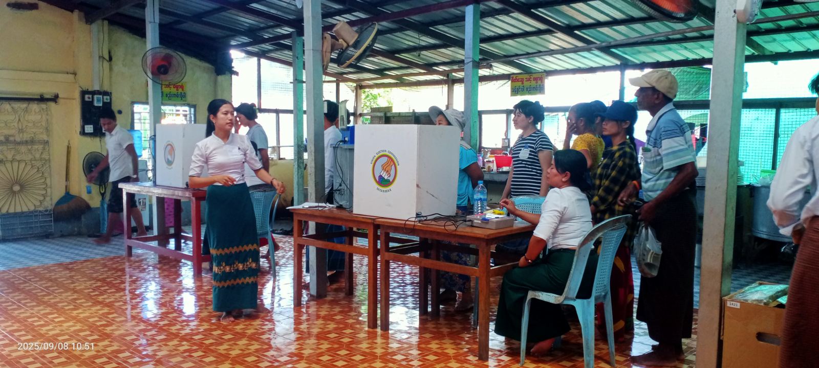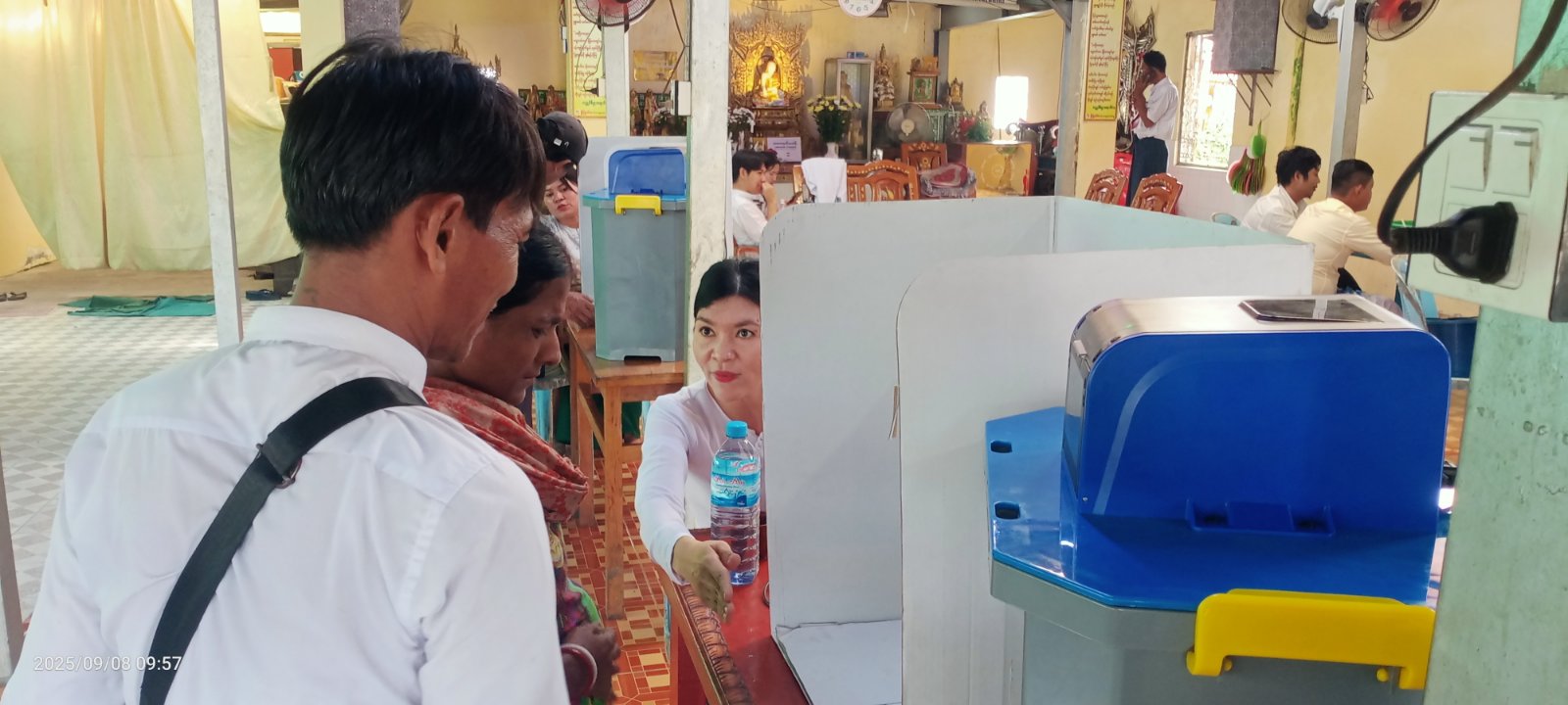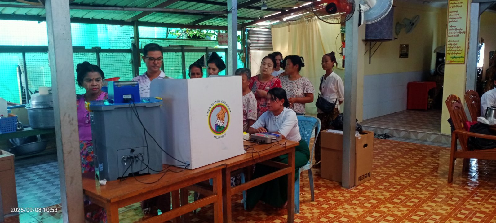 ရန်ကုန်တိုင်းဒေသကြီး အင်းစိန်ခရိုင် လှိုင်သာယာ (အနောက်ပိုင်း) မြို့နယ်တွင် မြို့နယ်စီမံခန့်ခွဲရေးနှင့် အုပ်ချုပ်ရေးကော်မတီနှင့် မြို့နယ်ရွေးကောက်ပွဲကော်မရှင်အဖွဲ့ခွဲတို့ ပူးပေါင်း၍ အမှတ် (၁၈) ရပ်ကွက် အေးရိပ်သာယာဓမ္မာရုံ၊ ပြည်လုံးချမ်းသာဓမ္မာရုံနှင့် မင်္ဂလာသီရိဓမ္မာရုံတို့၌ မဲဆန္ဒရှင်ပြည်သူများအား (MEVM) မဲပေးစက်ဆိုင်ရာ အသိပညာပေးခြင်းနှင့် လက်တွေ့စမ်းသပ်မဲပေးခြင်း အစီအစဥ်ကို ယမန်နေ့ နံနက် (၉) နာရီက ကွင်းဆင်းဆောင်ရွက်သည်။