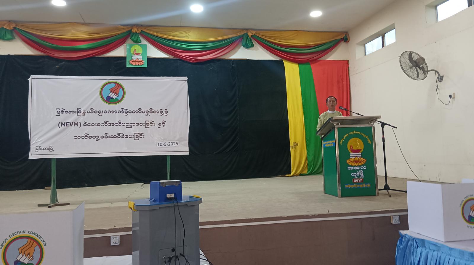 မန္တလေးတိုင်းဒေသကြီး၊ ကျောက်ဆည်ခရိုင်၊ မြစ်သားမြို့နယ်၊ မြို့နယ်ရွေးကောက်ပွဲကော်မရှင်အဖွဲ့ခွဲမှ ပါတီ စုံအထွေထွေရွေးကောက်ပွဲတွင် ဆန္ဒမဲပေးကြမည့် မဲဆန္ဒရှင်ပြည်သူများအနေဖြင့် မြန်မာအီလက်ထရော နစ်မဲပေးစက်ဖြင့်လွယ်ကူစွာ ဆန္ဒမဲပေးတတ်စေရန် ရည်ရွယ်၍ မြန်မာအီလက်ထရောနစ် (MEVM) မဲပေးစက်အကြောင်းအသိပညာပေးခြင်းနှင့် လက်တွေ့စမ်းသပ်မဲပေးမှုသရုပ်ပြသခြင်းကို စက်တင်ဘာ ၁၀ ရက်နေ့ နံနက် ၉ နာရီက ကူမဲမြို့ အခြေခံပညာအထက်တန်းကျောင်း အောင်ဆန်းခန်းမ၌ ပြုလုပ်ခဲ့သည်။