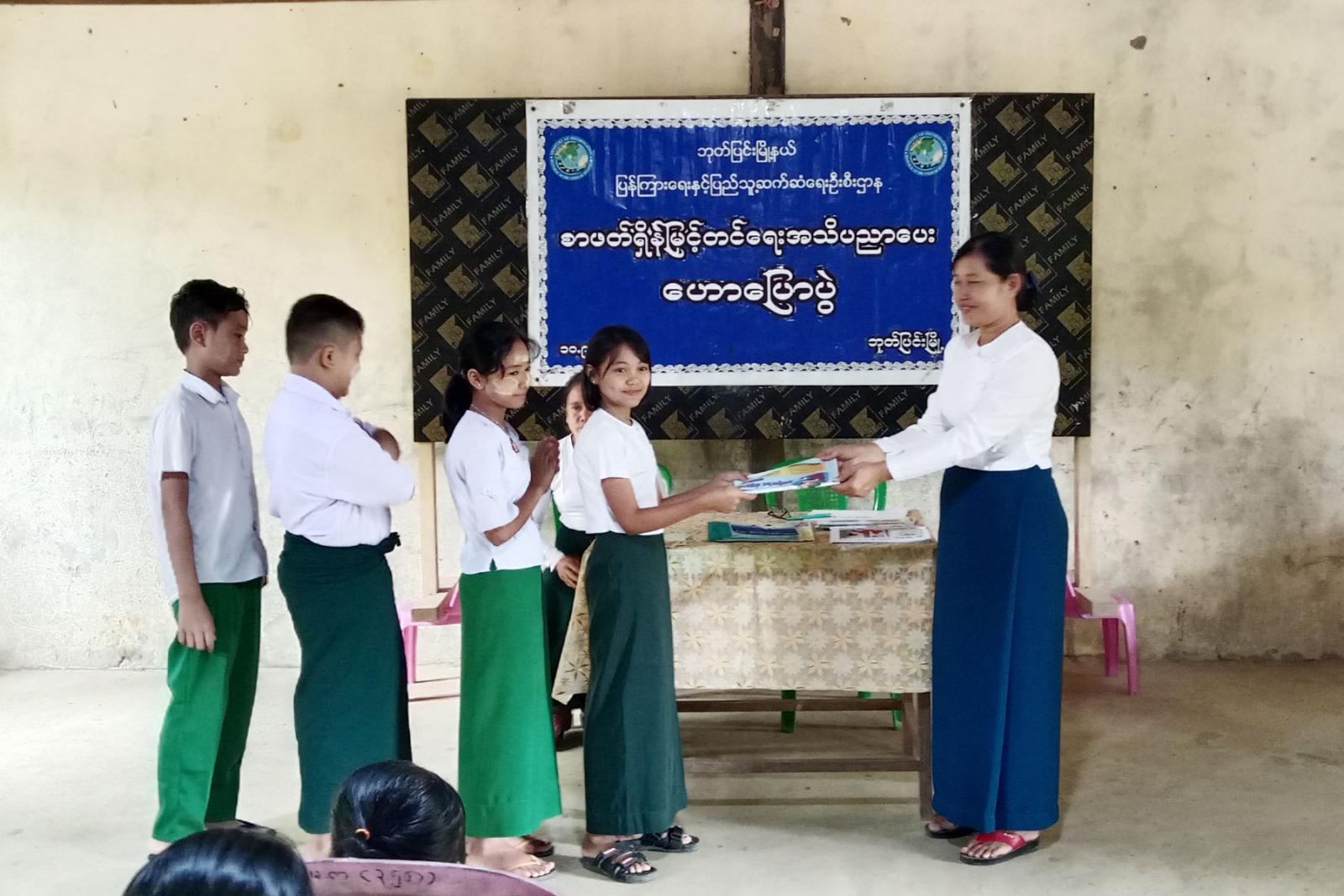 အသိပညာပေးဟောပြောပွဲတွင် အ-မ-က(၃၅၈) ကျောင်းအုပ်ဆရာမကြီး ဒေါ်ဆွေဝင်းထွေးက အသိပညာပေး ဟောပြောပွဲပြုလုပ်ရခြင်းနှင့်စပ်လျဉ်း၍ ပြောကြားသည်။ ဆက်လက်၍ မြို့နယ်ပြန်ကြားရေးနှင့်ပြည်သူ့ဆက်ဆံရေးဦးစီးဌာန၊ မြို့နယ်ဦးစီးမှူး ဒေါ်ဖြူဖြူသိန်းက စာဖတ်ရှိန်မြှင့်တင်ရေး ခေါင်းစဉ်ဖြင့်ဟောပြောခဲ့ရာ “ကျောင်းသား၊ သူများ အနေဖြင့် နောင်တစ်ချိန်တွင်နိုင်ငံနှင့် လူမျိုးအကျိုး သယ်ပိုးထမ်းရွက် ကြရမည်ဖြစ်၍ ယခုအရွယ်မှစပြီး ဗလငါးတန်နှင့်ပြည့်စုံအောင်၊ နိုင်ငံနှင့်လူမျိုးကိုချစ်မြတ်နိုးတတ်အောင်၊ တန်ဖိုးထားတတ်အောင် အသိပညာ၊ အတတ်ပညာများကို လေ့လာဆည်းပူးကြစေလိုပါကြောင်း၊ ရည်မှန်းချက်ထားရှိရမှာဖြစ်ကြောင်း၊ ပြင်ပဗဟုသုတရရှိစေရန် စာပေများဖတ်ရှုလေ့လာကြစေလိုပါကြောင်း၊ ပြန်ကြားရေးနှင့်ပြည်သူ့ဆက်ဆံရေးဦးစီးဌာန၊ ပြည်သူ့စာကြည့်တိုက်များတွင် အသိပညာဗဟုသုတရရှိစေရန် စာအုပ်စာပေများနှင့် သုတရသစာအုပ်စာစောင်များကို အခမဲ့လာရောက်ဖတ်ရှုပြီး ငှားရမ်းနိုင်ကြောင်း ပြောကြားခဲ့သည်။