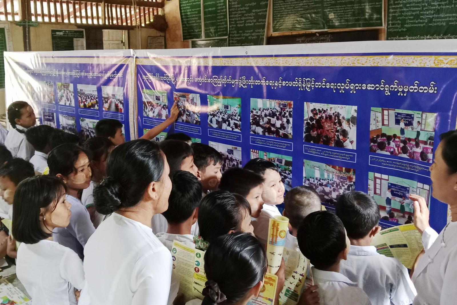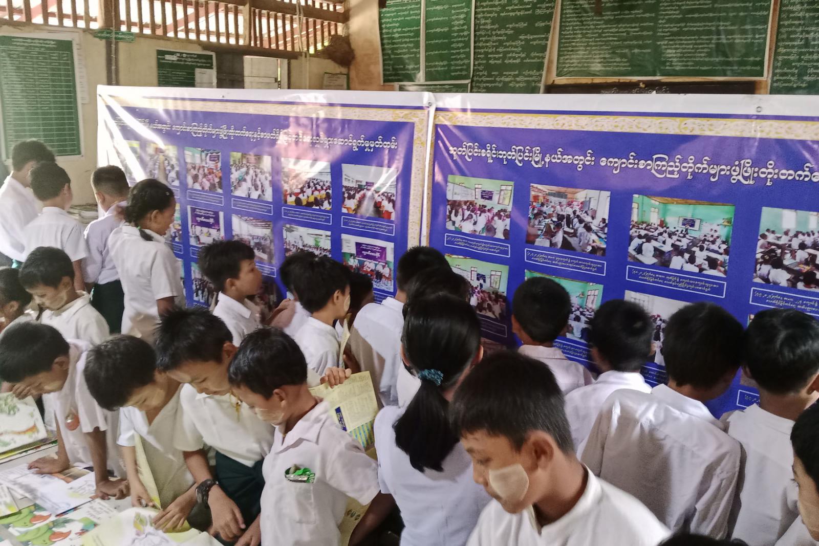 ထို့နောက် ပြန်ကြားရေးနှင့်ပြည်သူ့ဆက်ဆံရေးဦးစီးဌာနမှ စာဖတ်ရှိန်မြှင့်တင်ရေးအသိပညာပေး နံရံကပ်စာစောင်များ၊ စာအုပ်စာစောင်များ ခင်းကျင်းပြသထားရာ ကျောင်းသားကျောင်းသူများ စိတ်ပါဝင်စားစွာ ကြည့်ရှုလေ့လာဖတ်ရှုခဲ့ကြကြောင်း သိရသည်။