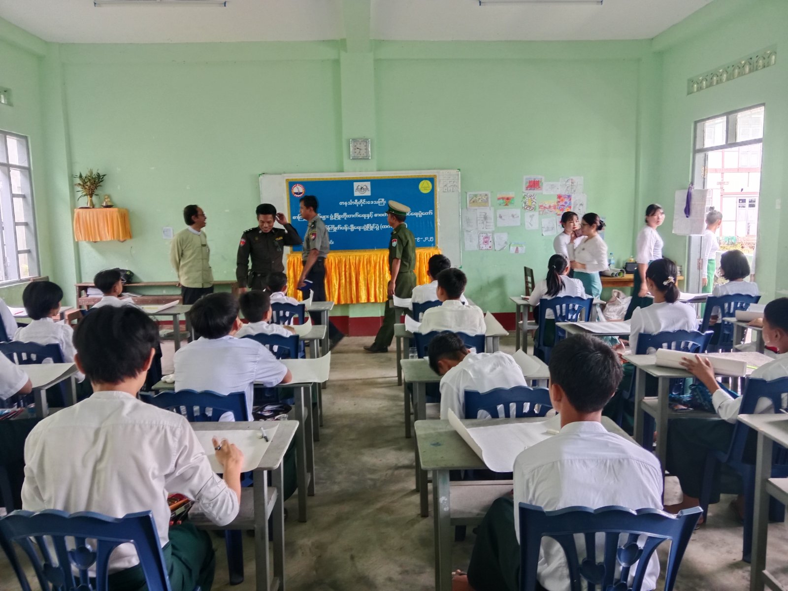 ယနေ့ကျင်းပသည့် စာကြည့်တိုက်များဖွံ့ဖြိုးတိုးတက်ရေးနှင့် စာဖတ်ရှိန်မြှင့်တင်ရေးပွဲတော်သို့ သရက်ချောင်းမြို့နယ်၊ (အ-ထ-က) သရက်ချောင်းကျောင်း၊ အ-ထ-က(ခွဲ)တီထွတ်ပြင်ကျောင်း၊ အ-မ-က (မူလွန်) ပန်းတောကျောင်း၊ အ-ထ-က (ခွဲ) ပိန်းတောကျောင်း၊ (အ-မ-က) မြို့မ (၁) ကျောင်းများမှ ဆရာ/ဆရာမများ၊ ကျောင်းသား/ကျောင်းသူများ၊ မိဘများစုစုပေါင်း (၈၀၀) ဦးခန့် တက်ရောက်ကြပြီး ပွဲတော်တွင် ခင်းကျင်းပြသထားသည့် ဓာတ်ပုံပြဘုတ်များနှင့်စာအုပ်ပြပွဲကို စိတ်ပါဝင်စားစွာကြည့်ရှုလေ့လာကြပြီး ပြိုင်ပွဲများတွင် ပျော်ပျော်ရွင်ရွင်ပါဝင်ဆင်နွဲကြသည့် ပြိုင်ပွဲဝင်များနှင့် ဆုရရှိသူများကို စက်တင်ဘာ ၁၀ ရက်နေ့တွင် ဆုများ ပေးအပ်ချီးမြှင့်မည်ဖြစ်ကြောင်း သိရသည်။