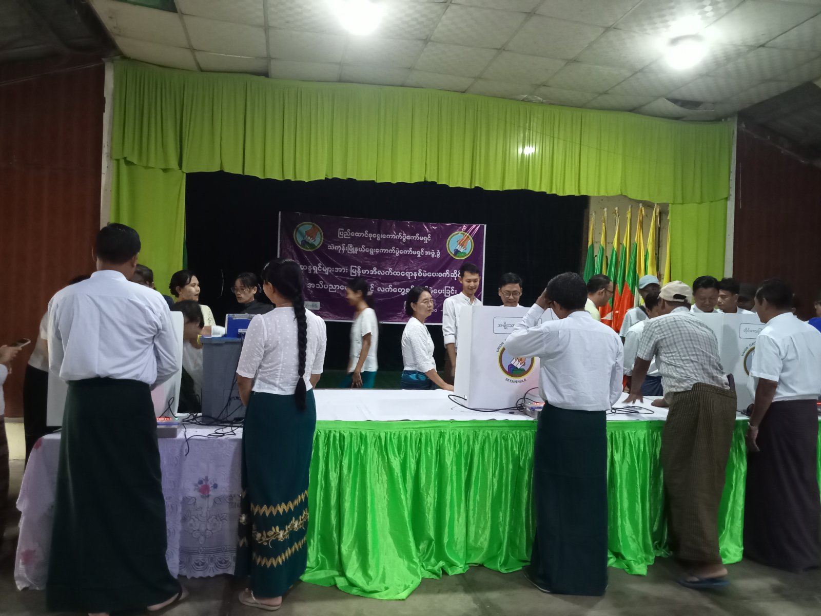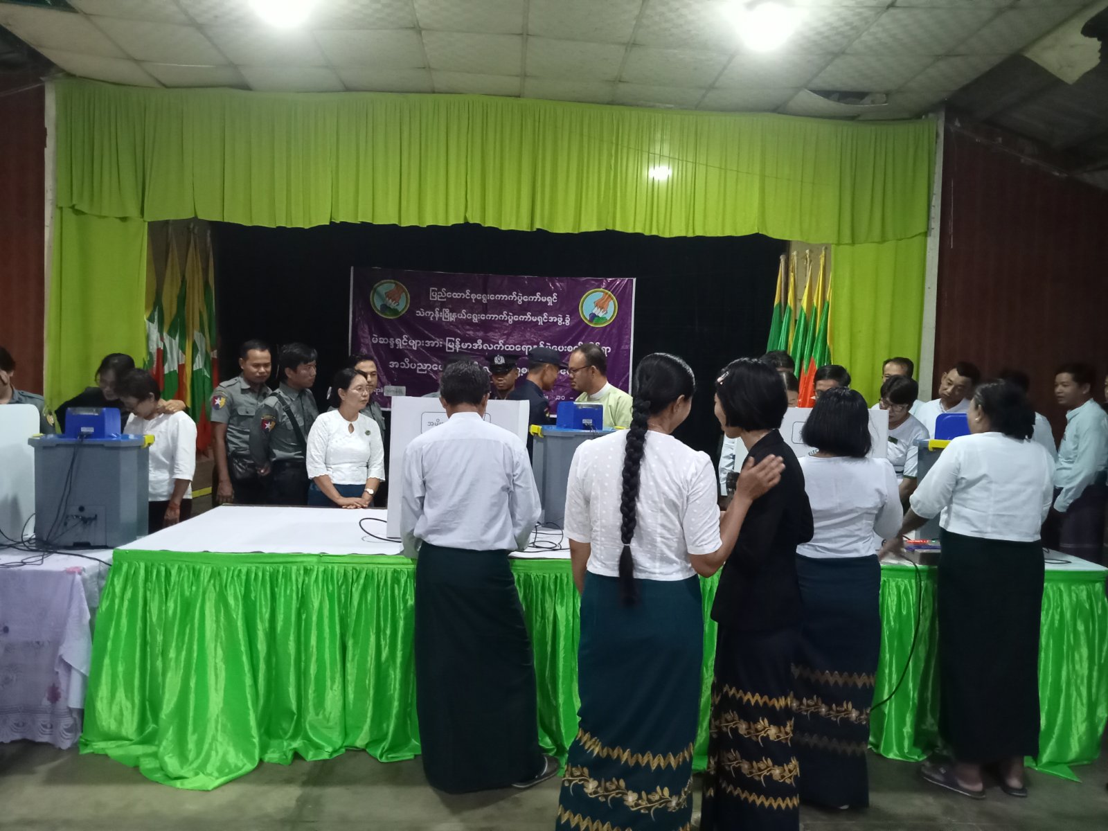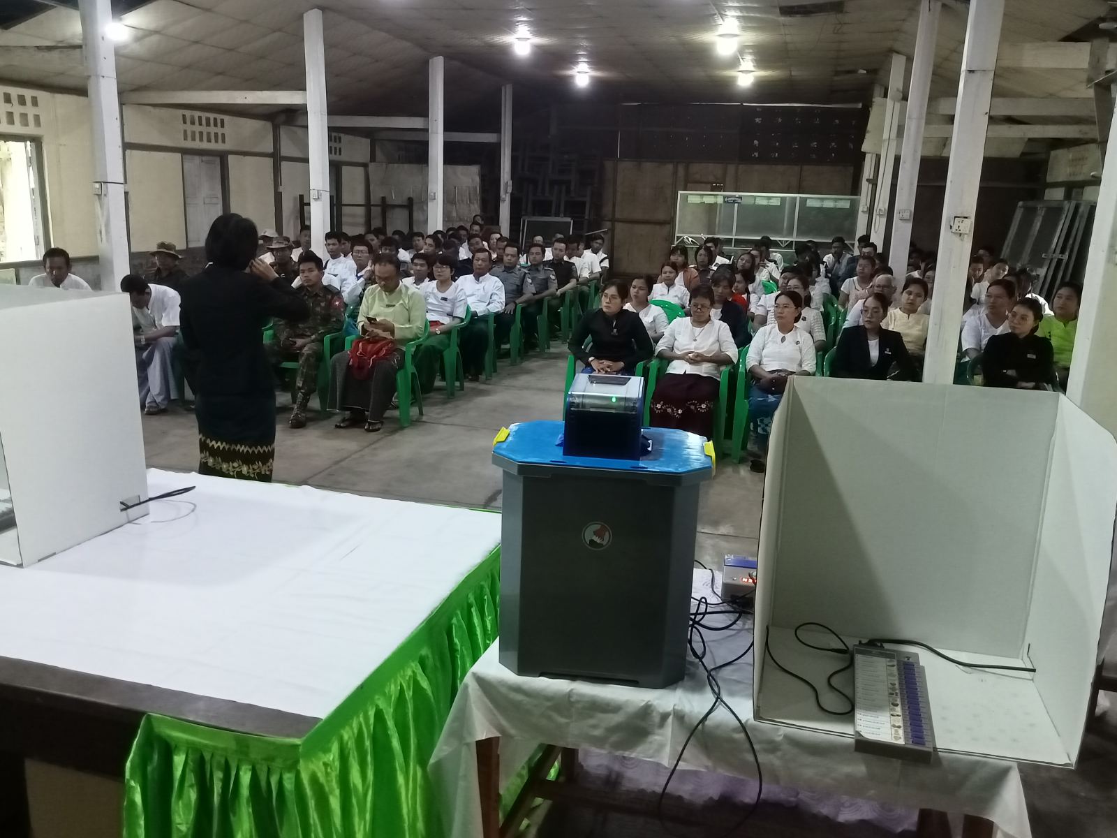 အဆိုပါ ဌာဆိုင်ရာဝန်ထမ်းများနှင့် မဲဆန္ဒရှင်ပြည်သူများအား မြန်မာအီလက်ထရောနစ်မဲပေးစက်(MEVM)ဖြင့် ဆန္ဒမဲပေးနည်းအသိပညာပေးခြင်းသို့ မြို့နယ်ရွေးကောက်ပွဲကော်မရှင်အဖွဲ့ခွဲဥက္ကဋ္ဌနှင့် အဖွဲ့ဝင်များ၊ မြို့နယ်ရွေးကောက်ပွဲကော်မရှင် ဦးစီးအရာရှိနှင့် ရုံးအဖွဲ့များက စနစ်တကျကြီးကြပ်၍ ရှင်းလင်းသရုပ်ပြသဆောင်ရွက်ပေးခဲ့ကြကြောင်း သတင်းရရှိသည်။