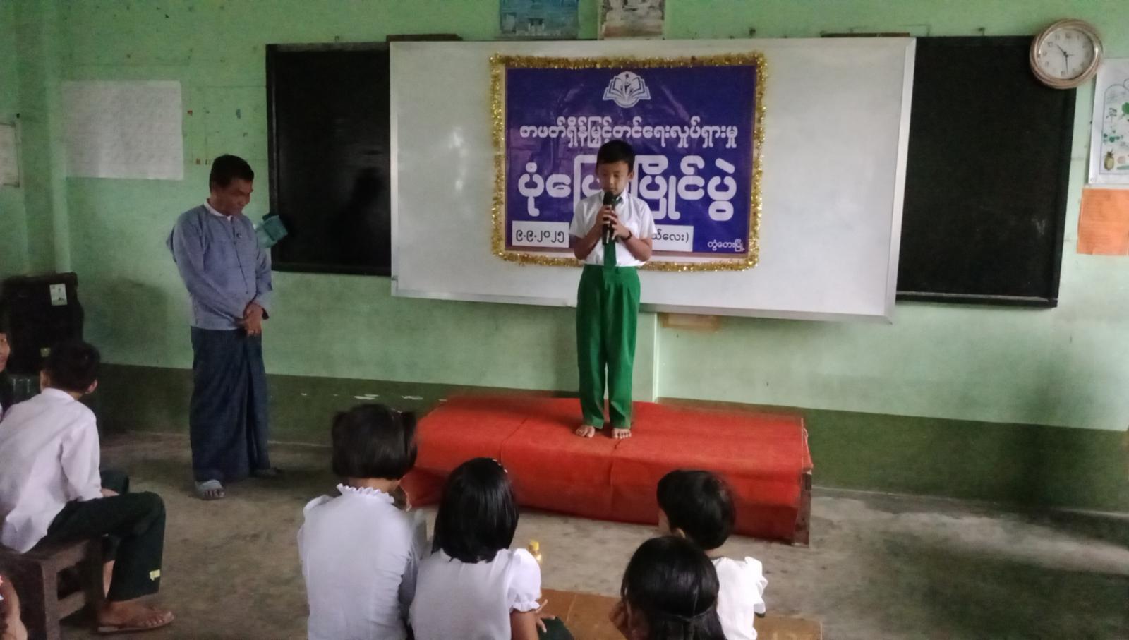 ထို့နောက် ကျပန်းစကားပြောပြိုင်ပွဲ၊ ဖတ်မှတ်စွမ်းရည်ပြိုင်ပွဲ၊ ပုံပြင်ပြောပြိုင်ပွဲ၊ ကဗျာရွတ်ဆိုပြိုင်ပွဲများ၊ ဂိမ်းကစားပြိုင်ပွဲများ ဆက်လက်ကျင်းပရာ မူလတန်းအဆင့်၊ အလယ်တန်းအဆင့် ကျောင်းသား၊ ကျောင်းသူလေးများ ဝင်ရောက်ယှဉ်ပြိုင်ခဲ့ကြသည်။ ဆက်လက်၍ ပြိုင်ပွဲတွင်ဆုရရှိသော ပထမ၊ ဒုတိယ၊ တတိယ၊ နှစ်သိမ့်ဆုရရှိသော ကျောင်းသား၊ ကျောင်းသူများအား တာ၀န်ရှိသူများက ဆုများအသီးသီးပေးအပ်ခဲ့ကြသည်။ ယင်းနောက် ကျေးရွာတာဝန်ခံ ဦးထွန်းထွန်းဝင်းကကျေးဇူးတင်စကားပြောကြားခဲ့သည်။