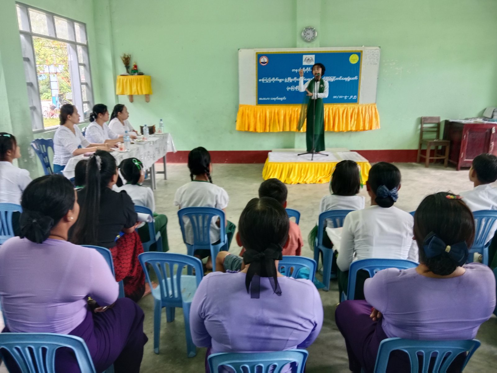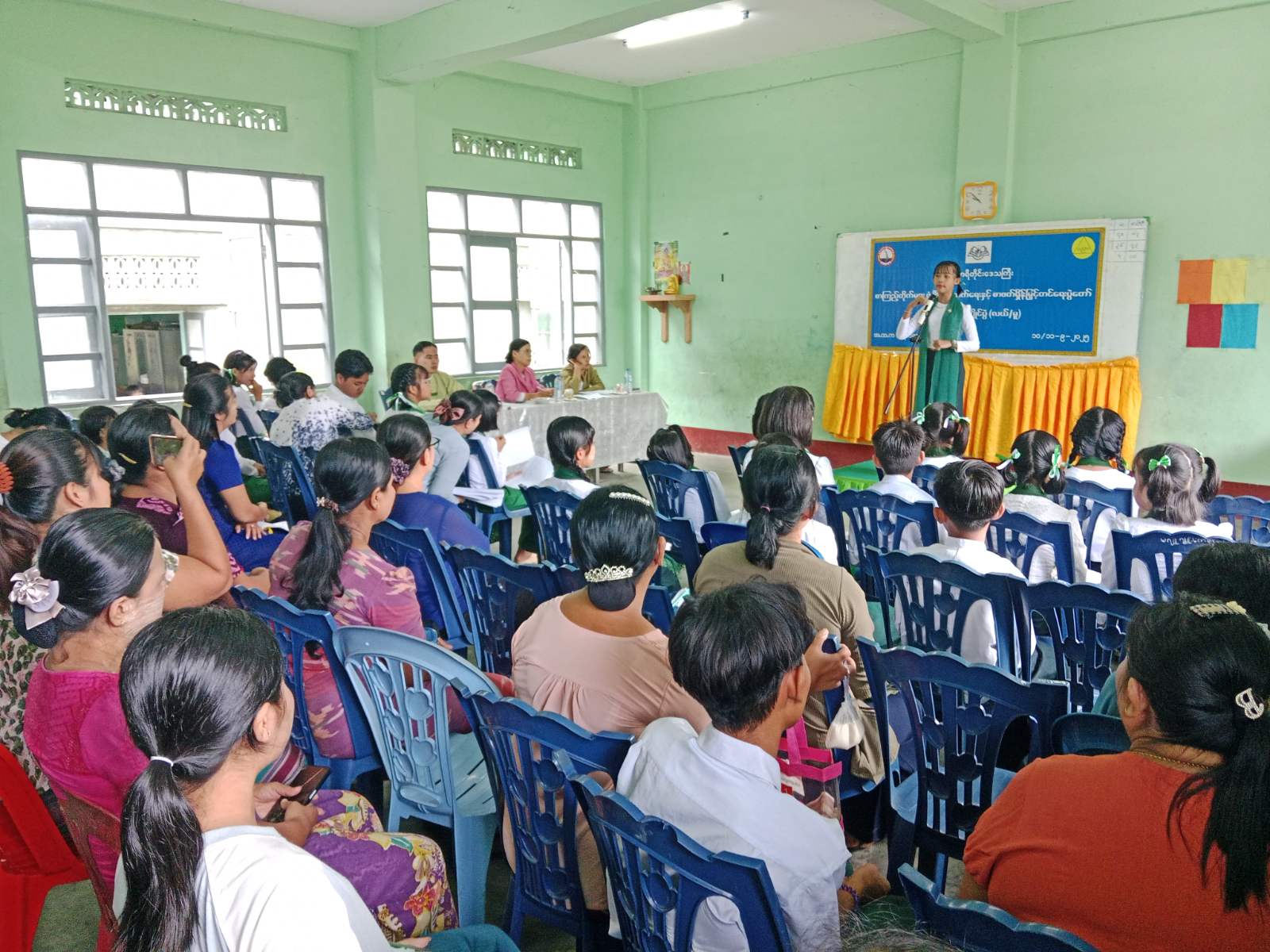ဆက်လက်၍ စာပေဟောပြောပွဲကျင်းပရာ မြို့နယ်ပြန်ကြားရေးနှင့် ပြည်သူ့ဆက်ဆံရေး ဦးစီးဌာန ဦးစီးအရာရှိ ဒေါ်နန်းခလိုက်ရှုက စာကြည့်တိုက်များ ဖွံ့ဖြိုးတိုးတက်ရေး နှင့်စာဖတ်ရှိန်မြှင့်တင်ရေးပွဲတော် ရည်ရွယ်ချက်များအား ရှင်းလင်းပြောကြားပြီးနောက် Book Club အဖွဲ့ဝင် ဒေါ်မိသူဇာနှင့် စာရေးဆရာမ နုနှင်းသစ်တို့က ကျောင်းသားကျောင်းသူများအား စာဖတ်ခြင်း၏ အကျိုးကျေးဇူး ခေါင်းစဉ်ဖြင့်အသိပညာပေးဟောပြောသည်။